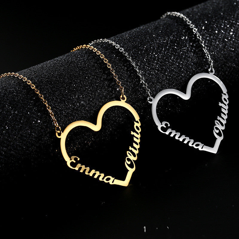 Fashion Custom Stainless Steel Name Heart Necklace For Women Personal Letter Gold Choker Necklace Gift