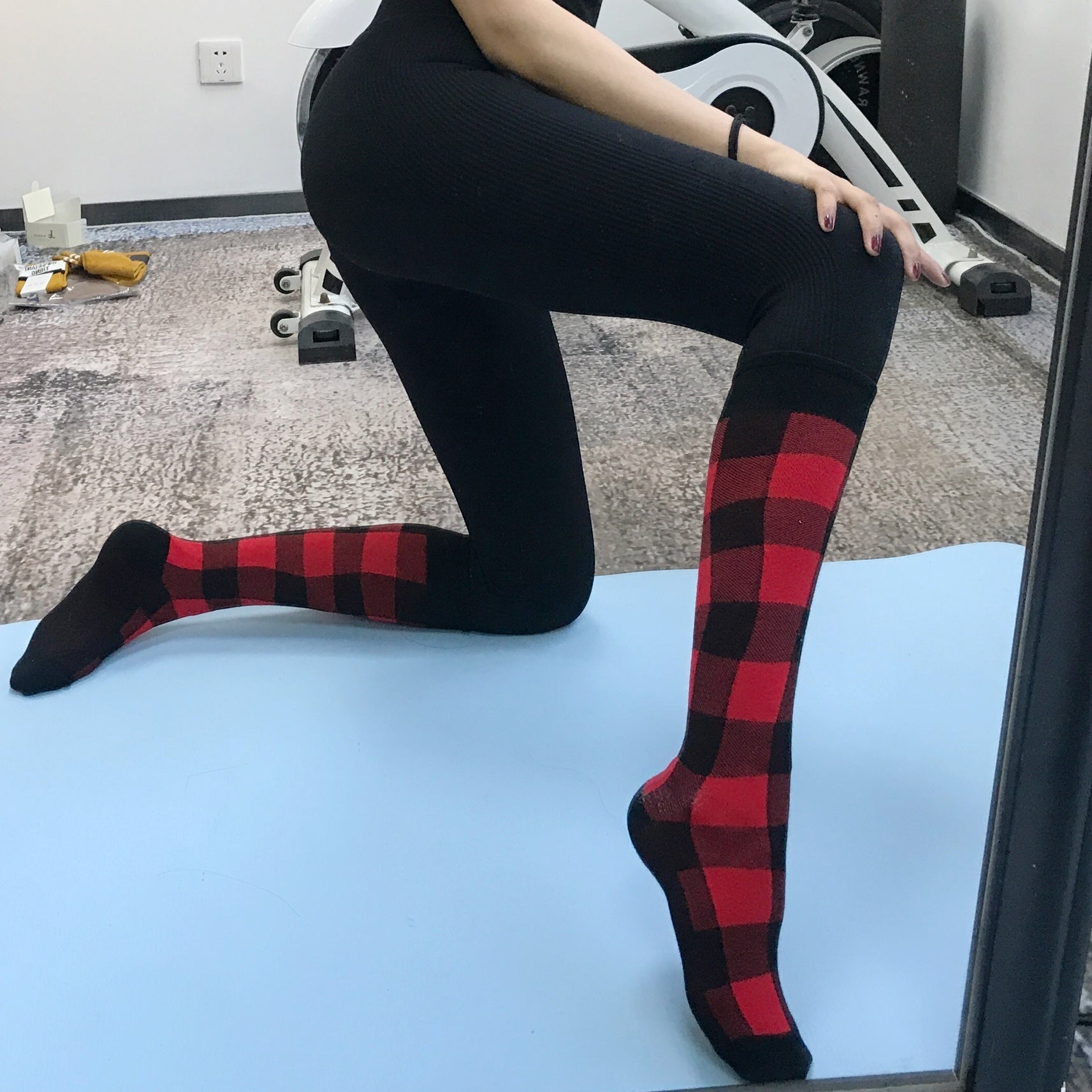 Fitness Cheerleading Yoga Sport kalv Socks knälängd löpning i rörstrumpor