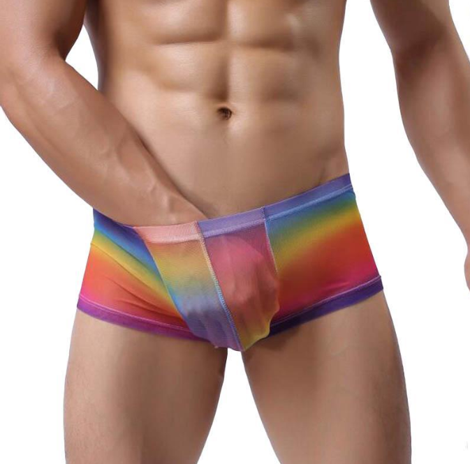 Men's Boxer Gauze Transparent Men's Panties Rainbow Gradient Slipper Sexy See Through Men's Underwear Cuem Homemmen Boxer Shorts