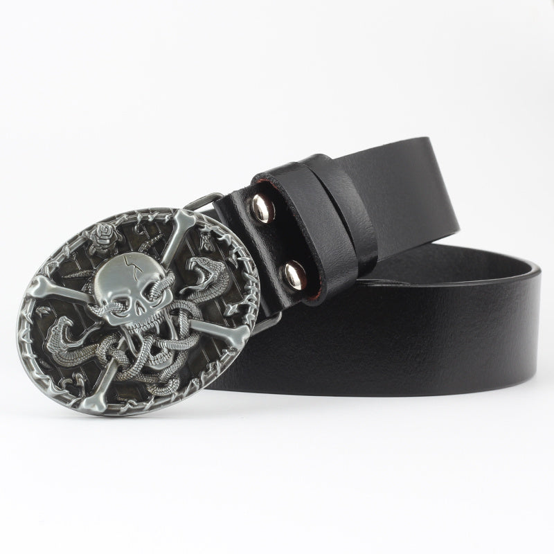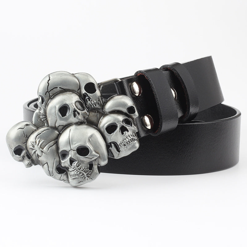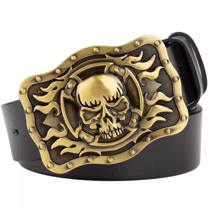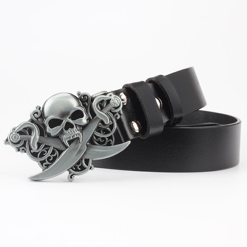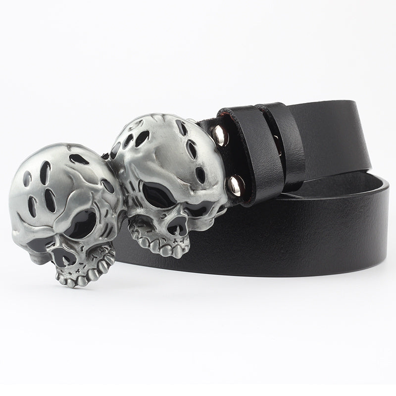 Men's Casual Skull Decorative Two-Layer Cowhide Belt - Rebellious Style