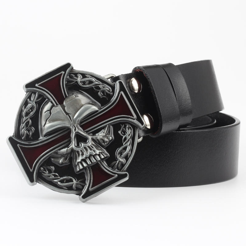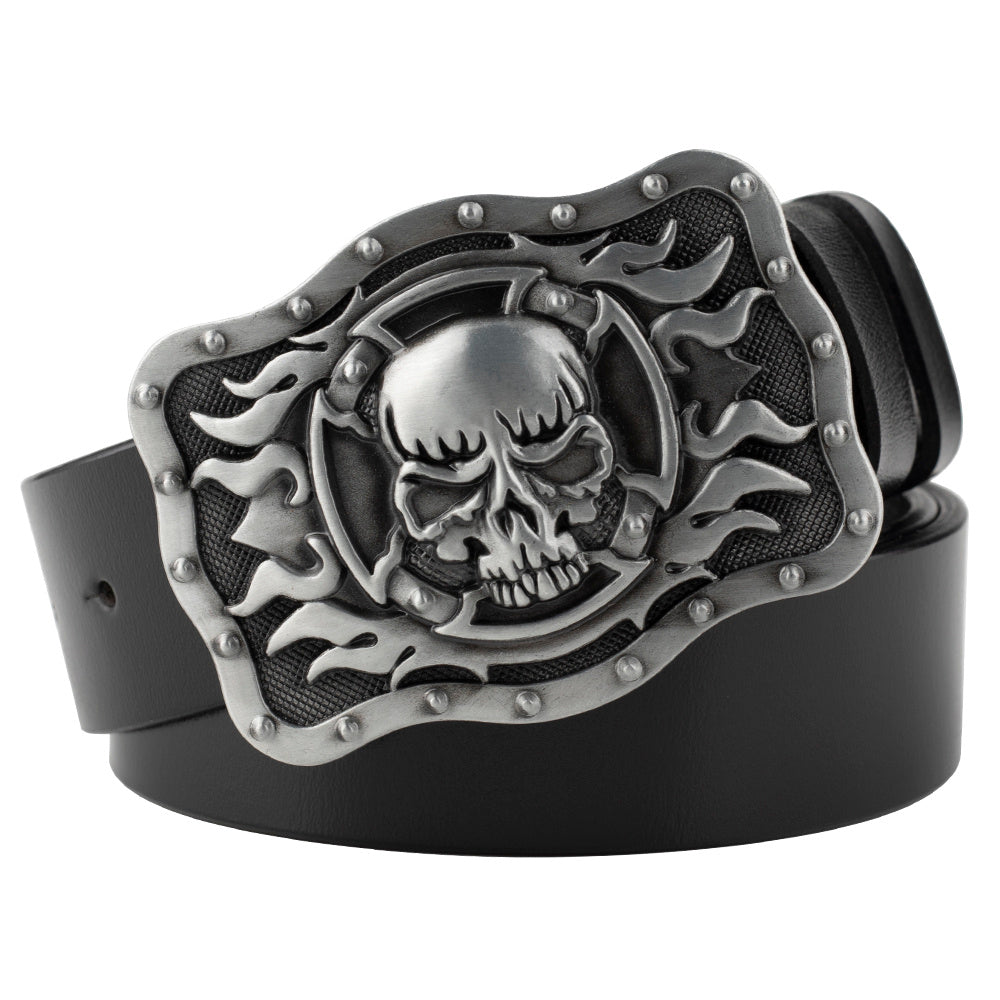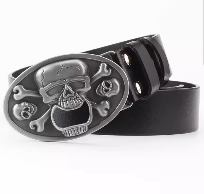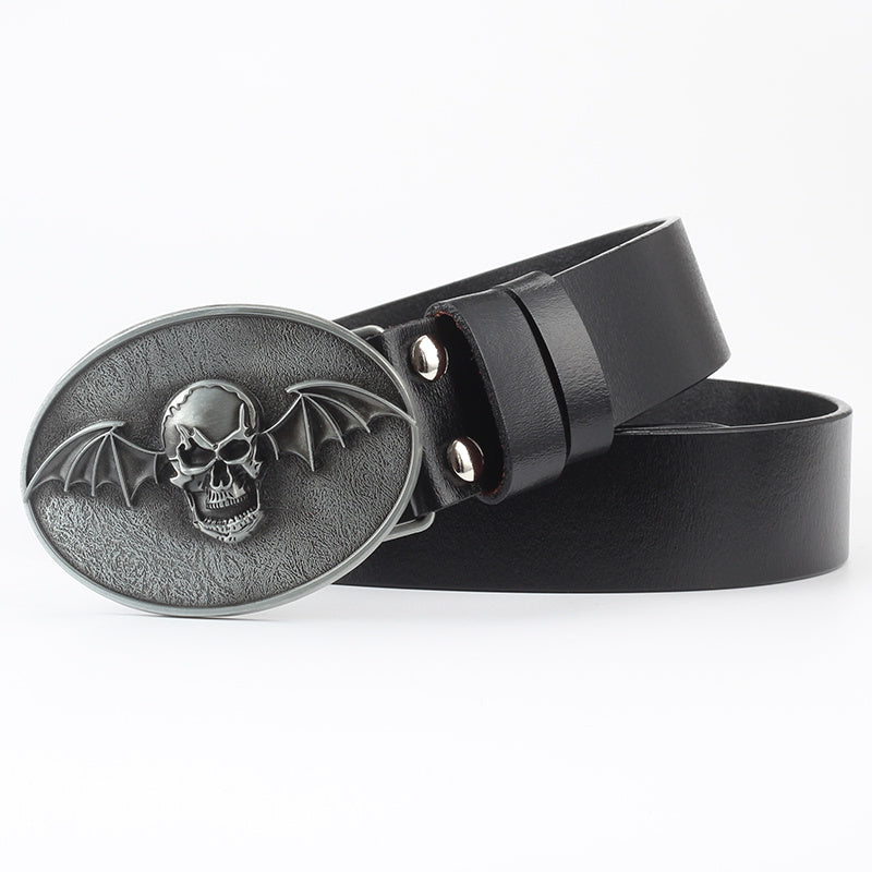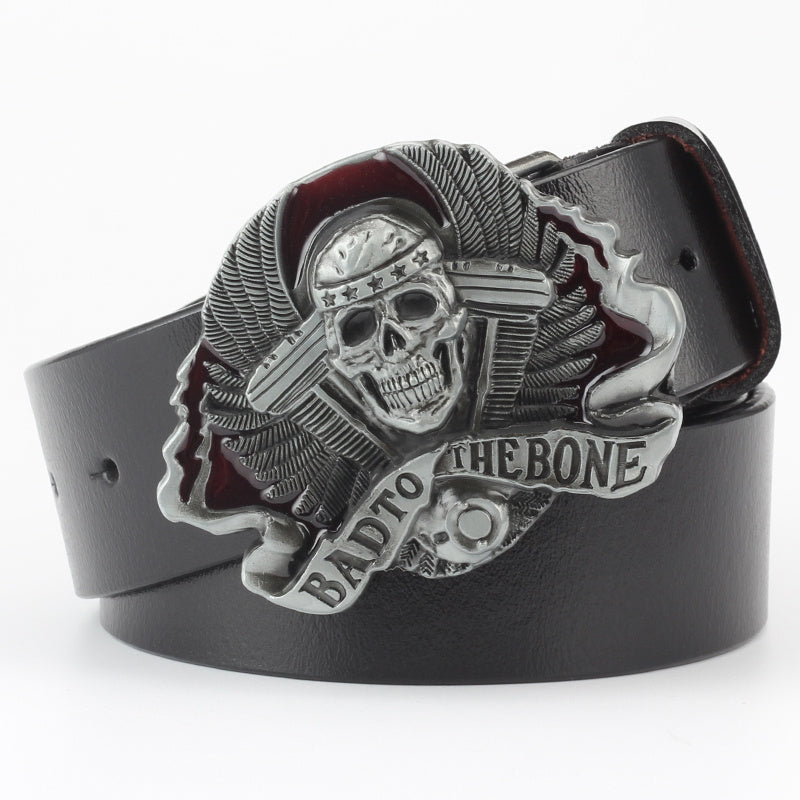 Men's Casual Skull Decorative Two-Layer Cowhide Belt - Rebellious Style