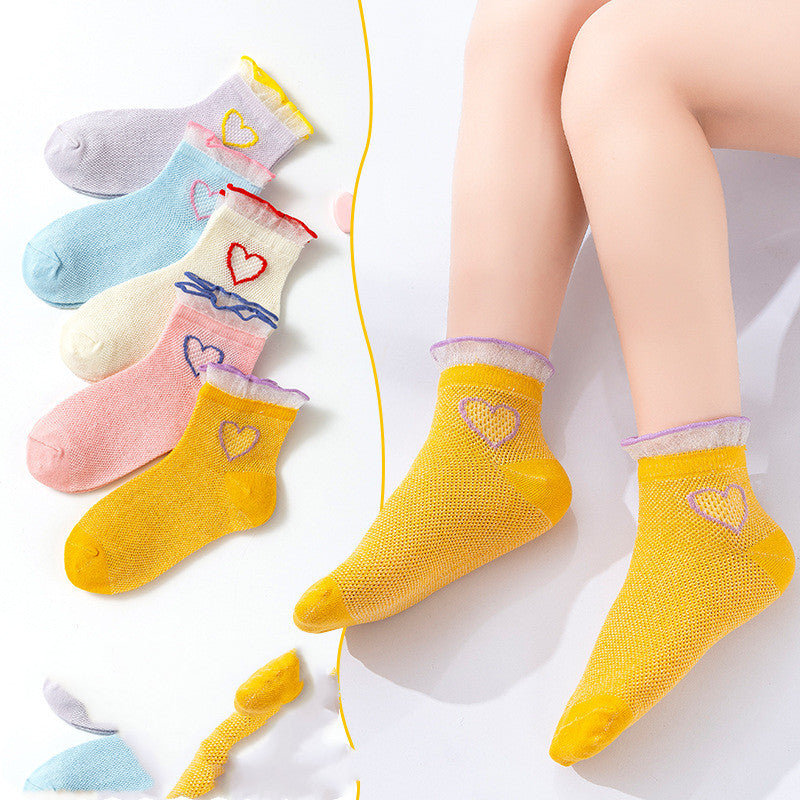 Mesh Children's Socks Cartoon Embroidered Children's Boat Socks Emoticons