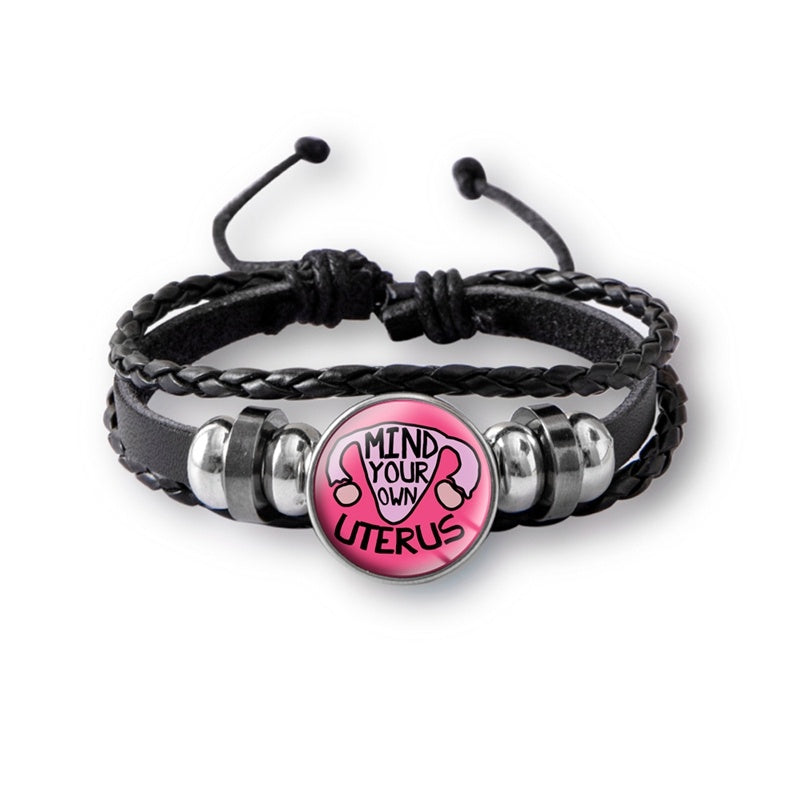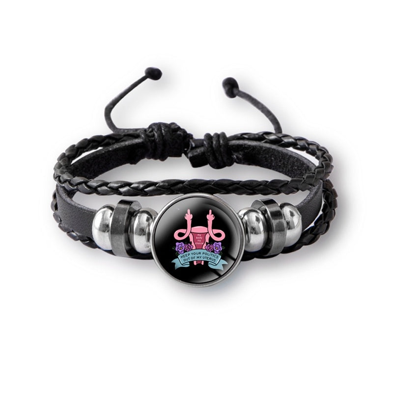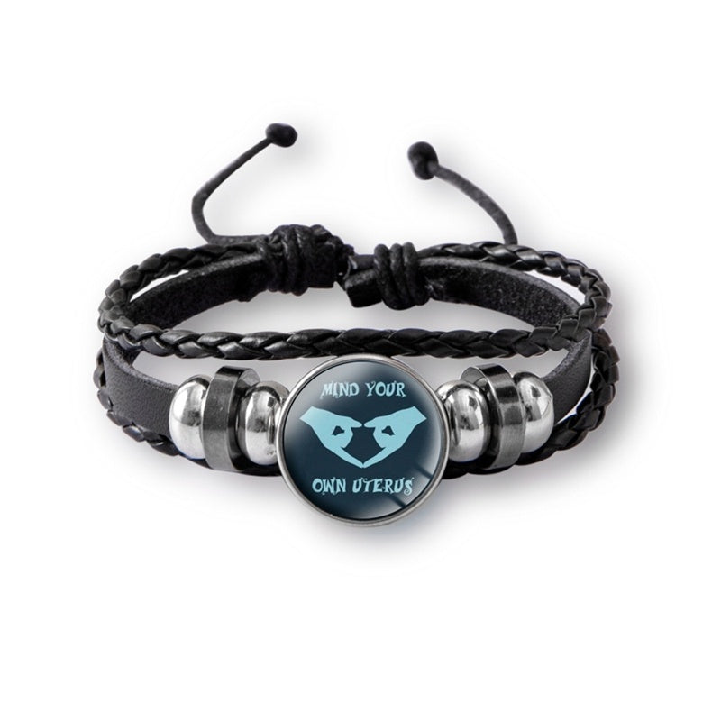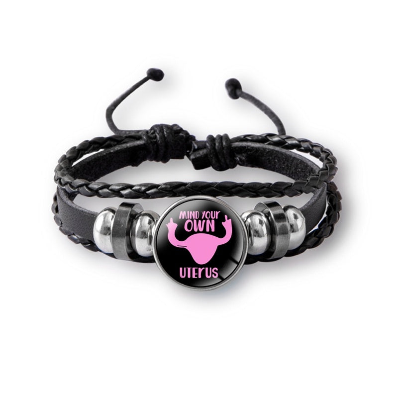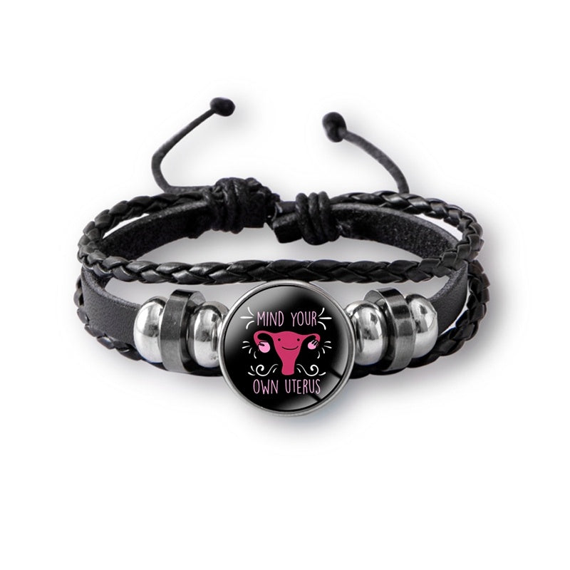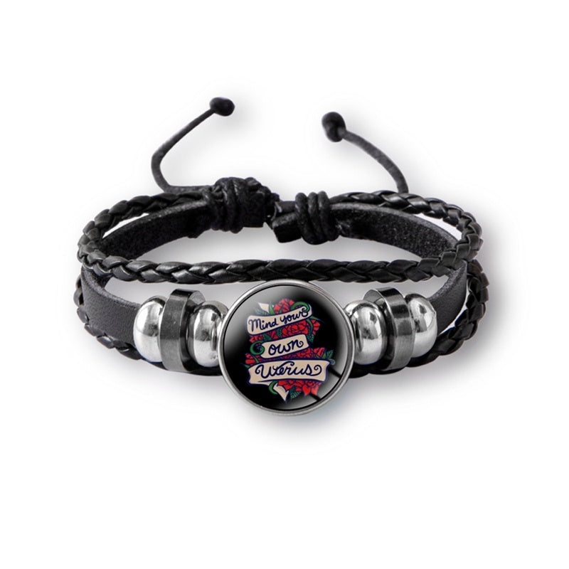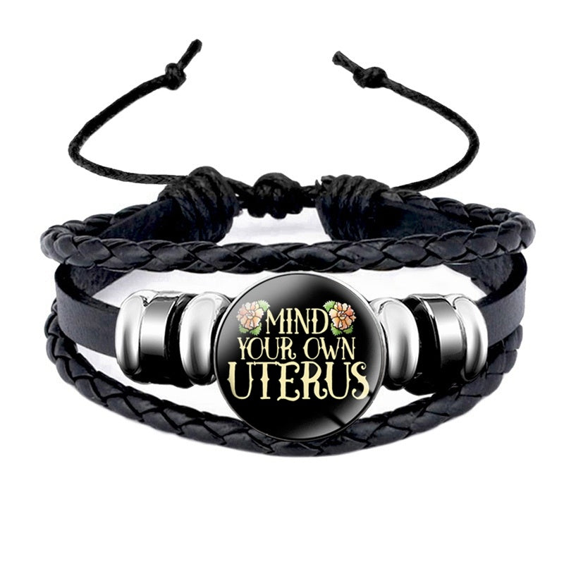 Mind Your Own Uterus Glass Snap Button Charm Bracelet Vintage Multi-layer Leather Bracelets For Women Men