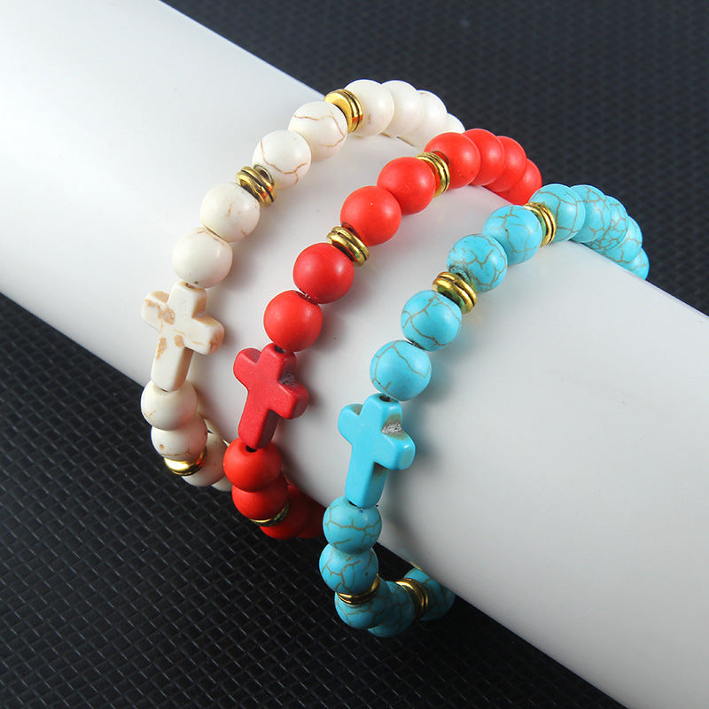Natural Stone Cross Men Bracelet DIY Black Matte Beaded Multiple Colour Beads Buddha Charm Bracelets