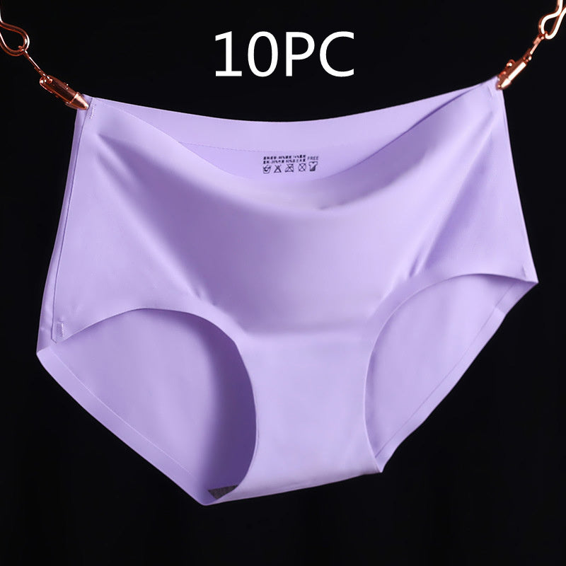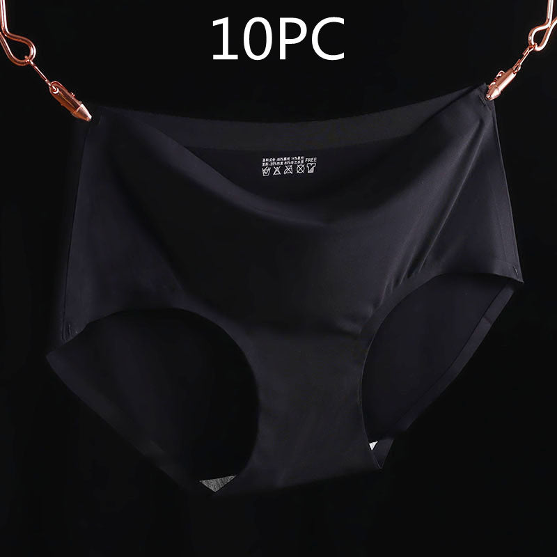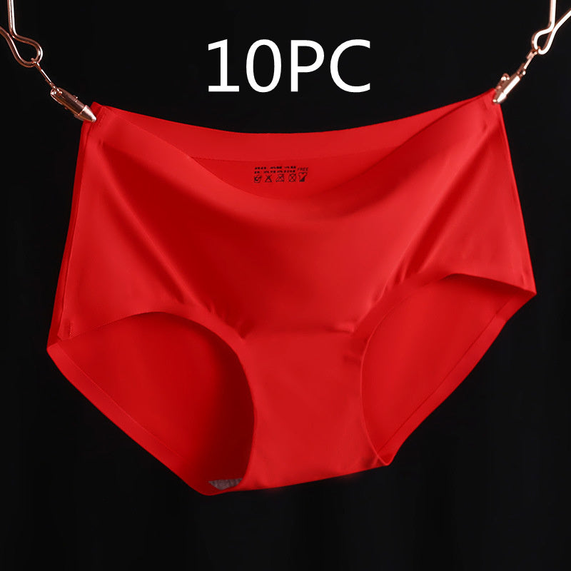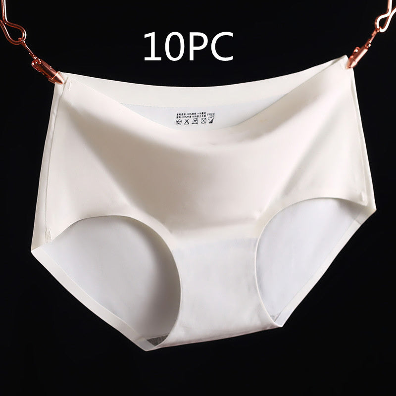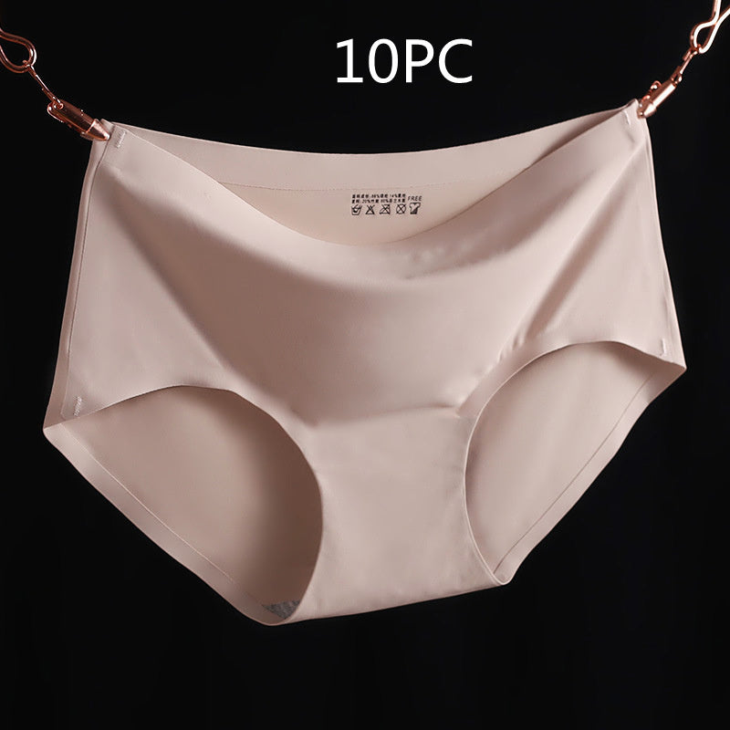 Non-Marking Underwear Women Ladies Ice Silk One-Piece Mid-Waist Large Size