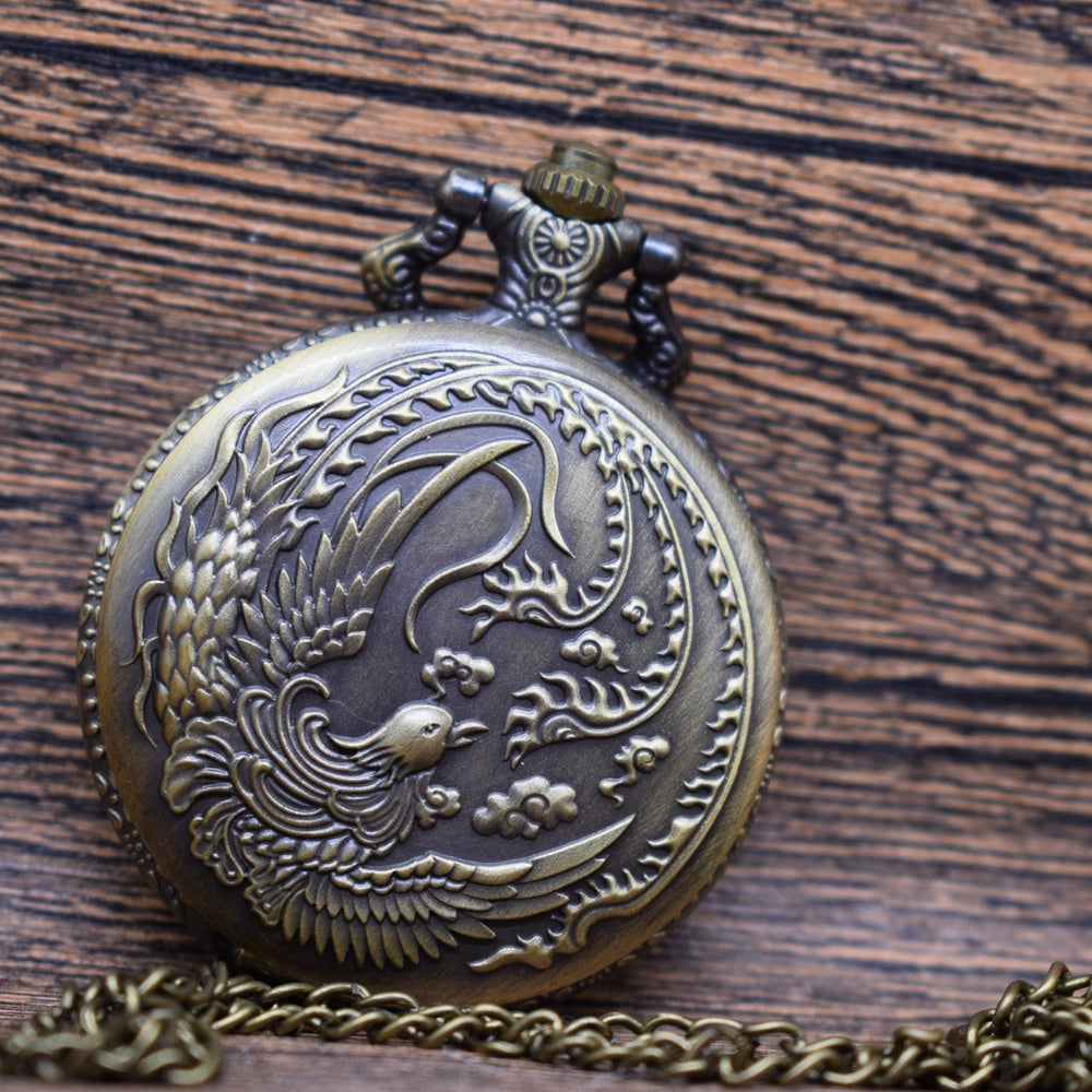 Pocket Watch Men's Flying Dragon Clamshell Hollow Roman Scale Pocket Watch - Exquisite Power Freedom Symbolic Statement