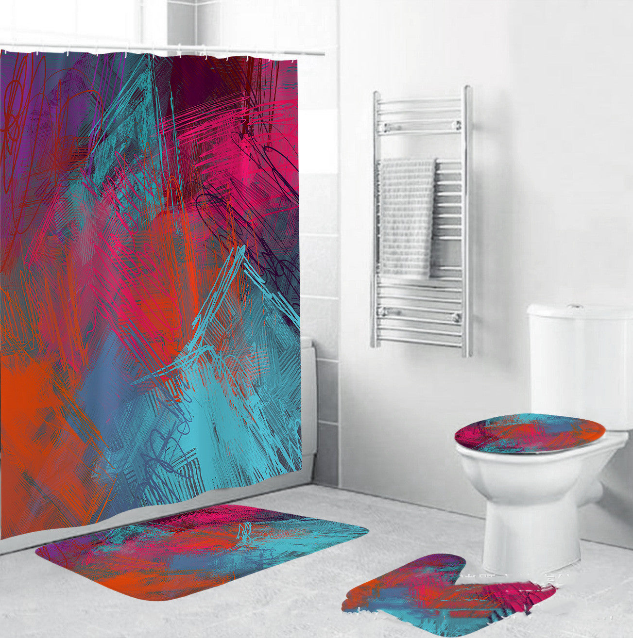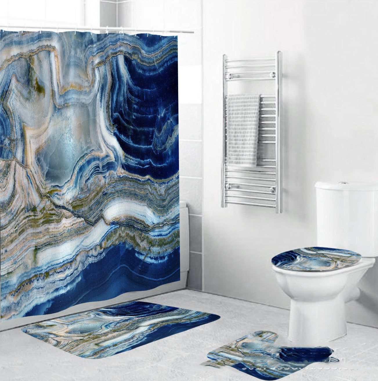 3D Art Geometric Shower Curtains in the Bathroom Waterproof Bath Curtain with Hook Sets Flannel Bath Mat Rugs Carpet Home Decor