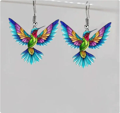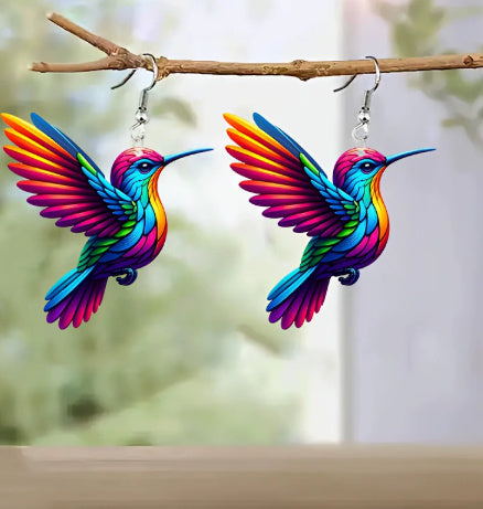 Colorful Bird Acrylic Earrings Vintage Necklace