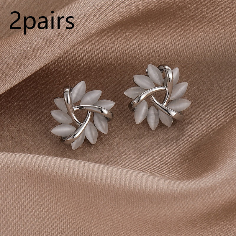 Rhinestone-encrusted Flower Ear Clips Artistic Retro Style