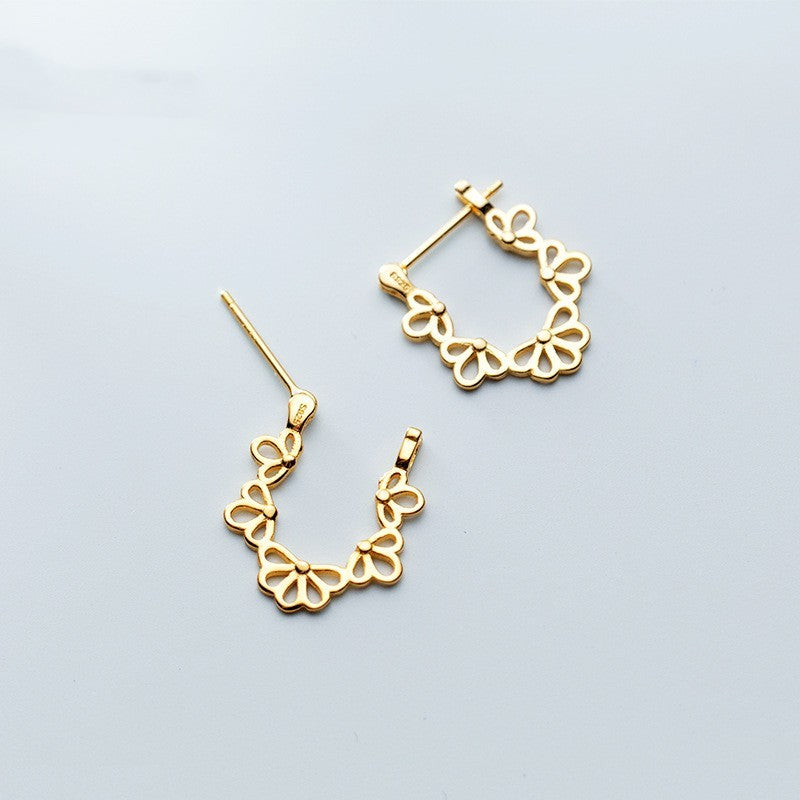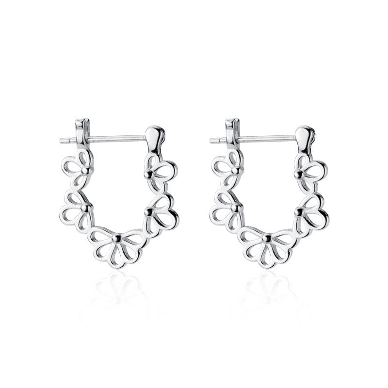 S925 Silver Ear Clip Female Hollow Flower