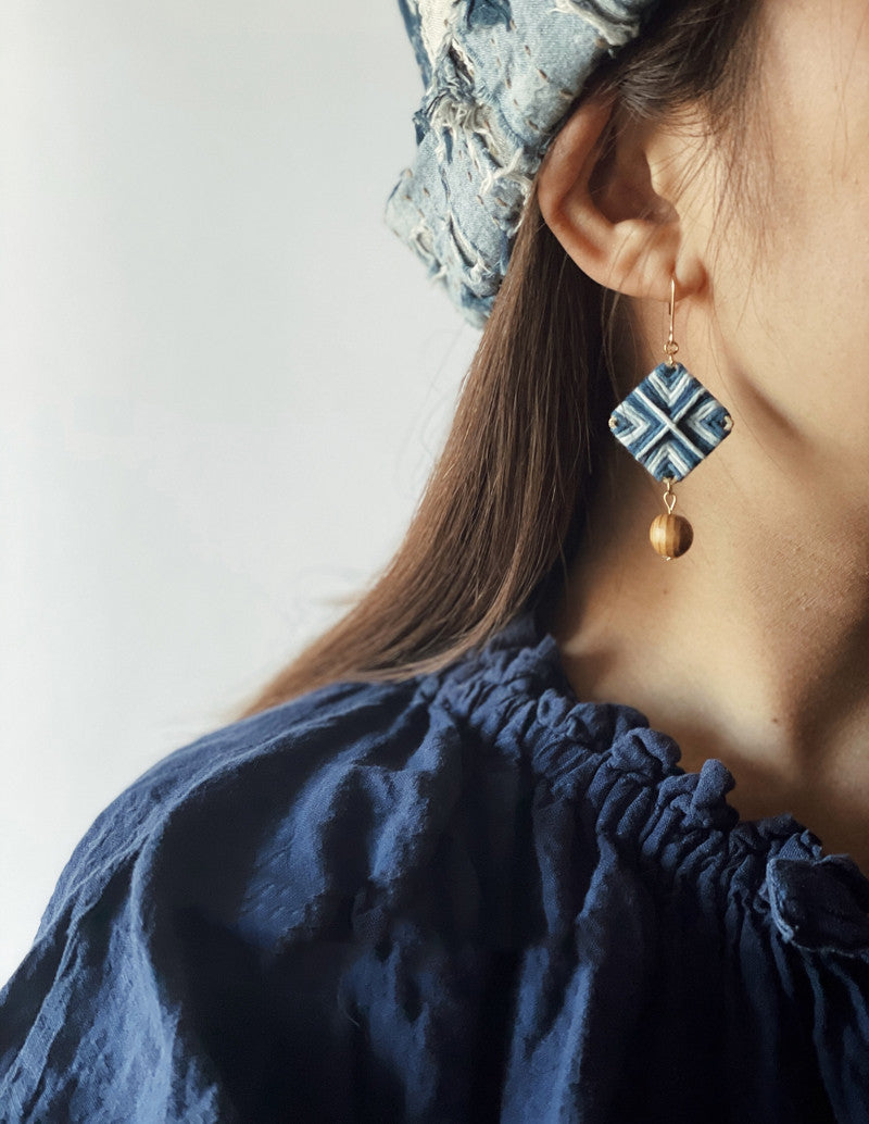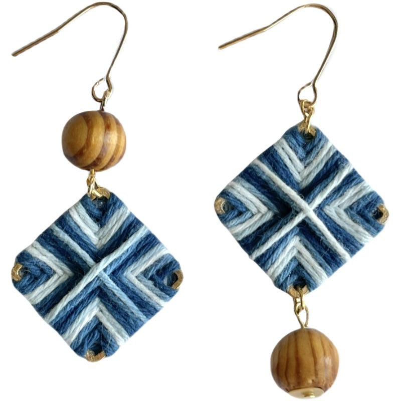 Bluedyed Plan-dyed Niche Designer Original Woven Diamond Asymmetric Earrings