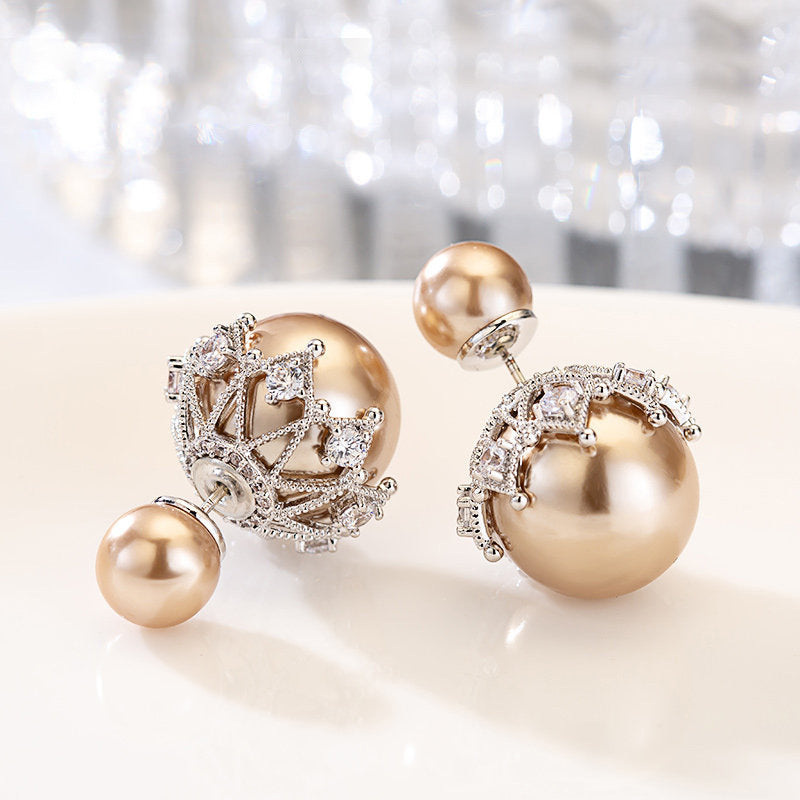 Sterling Silver Double-sided Pearl Stud Earrings