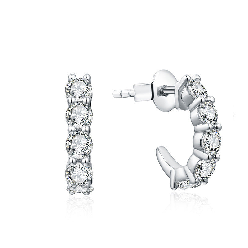 1 Karat Rhinestone Ear Studs Women's S925 Sterling Silver