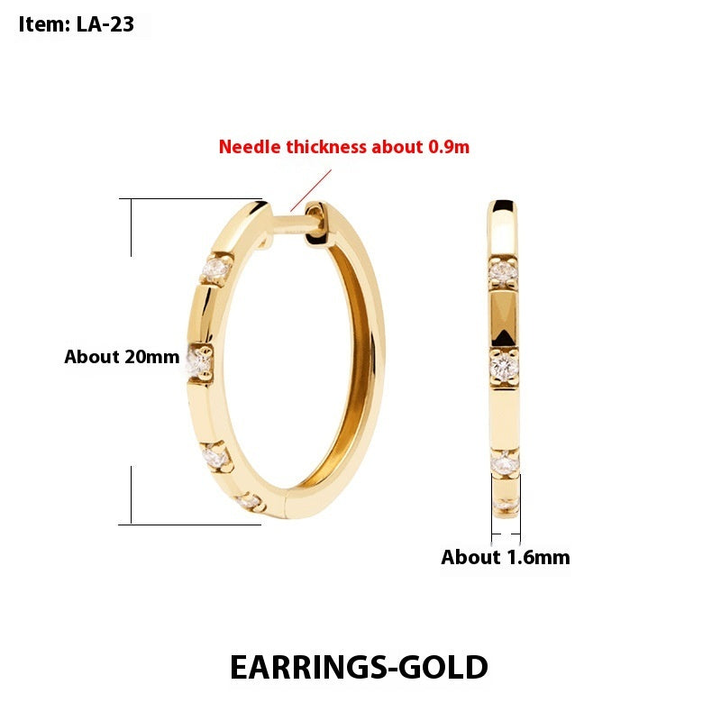 Round Stud Earrings Zircon Micro-Inlaid Gold Earrings