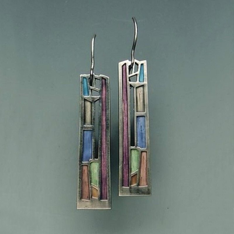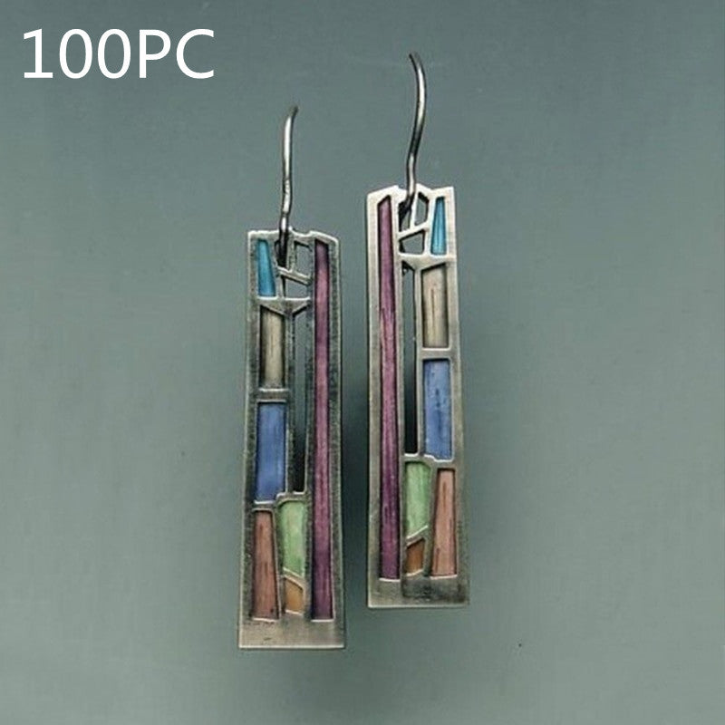 Vintage Mix Color Dangle Earring for Women Bohemian Tribal Hollow Out Metal Floral Long Earrings