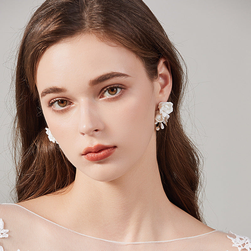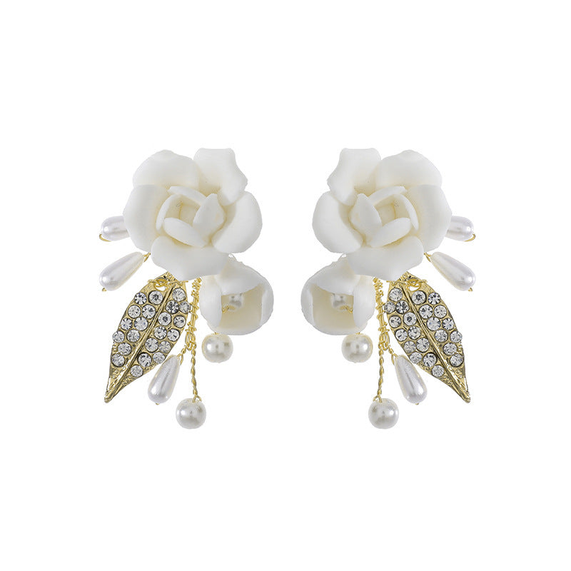 Classic Luxury Wedding Earring Charm Jewelry Elegant Zircon Crystal Flower Pearl Earrings For Women Bridesmaid Gift