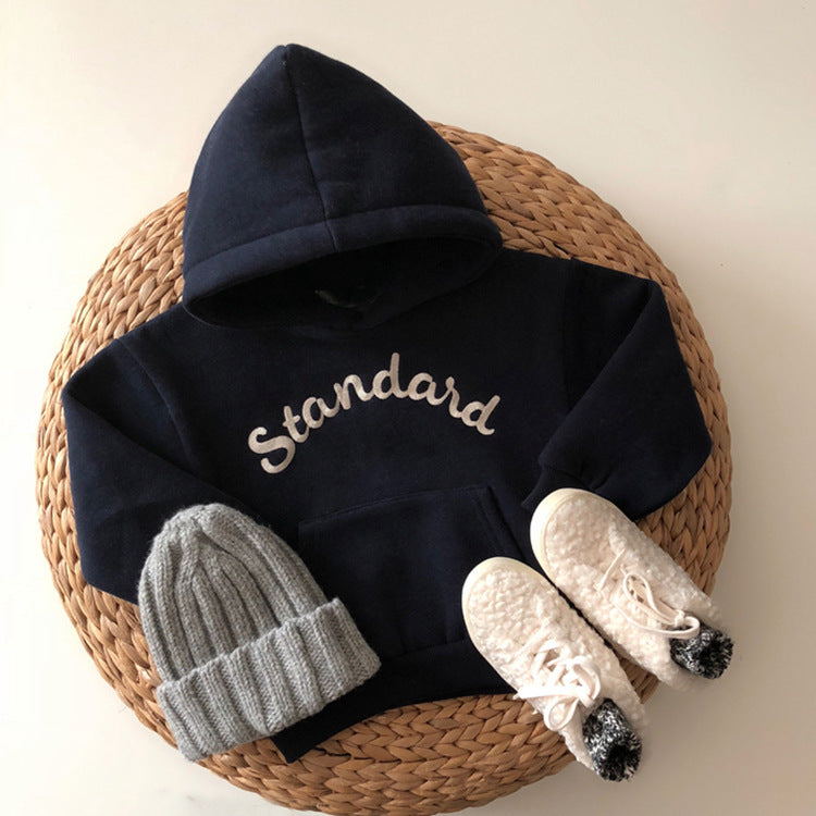 Children's Clothing For Boys And Girls With Korean Fan Letters Casual Hooded Pullover Fleece Sweater
