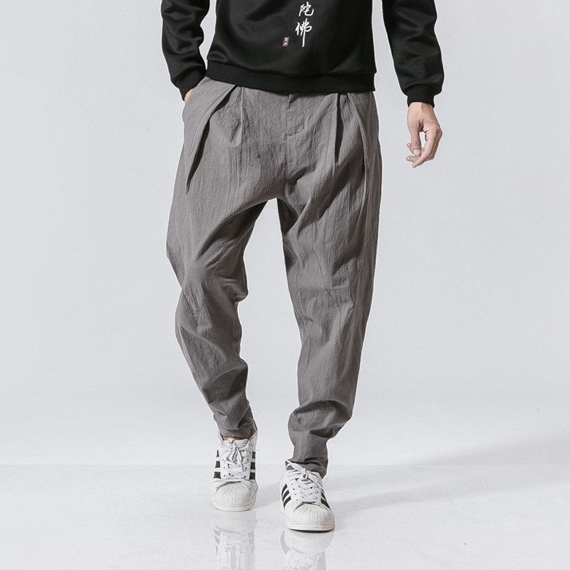 Cotton Linen Harem Pants Men Jogger Pants Male Fashion Autumn Casual Trousers Chinese Button Cross Pants Trousers