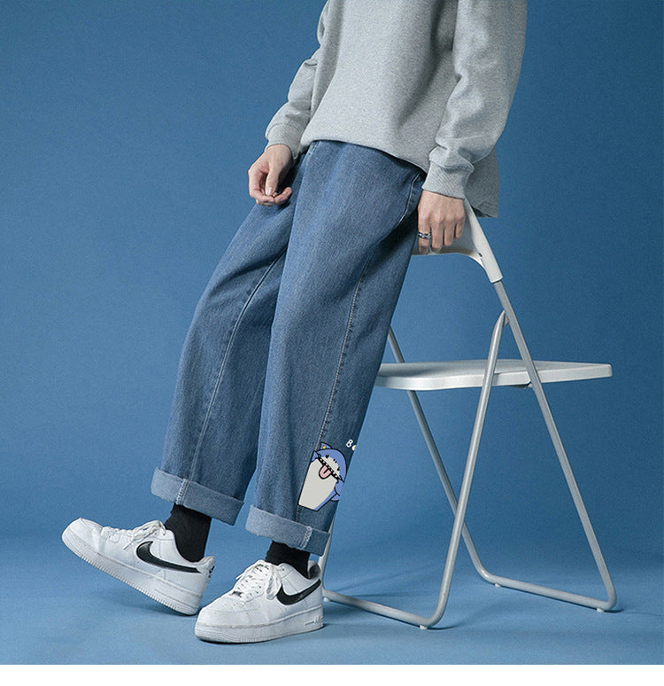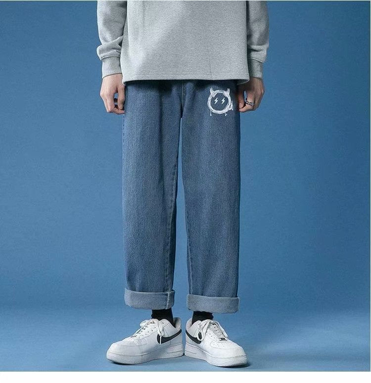 Men's Cotton Streetwear Denim Jeans - Black/Red/White/Yellow - M-XXXL - Loose Fit Party Trousers - Asian Sizing