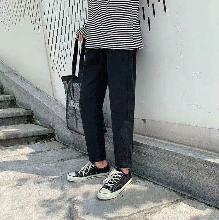 New Jeans Men\'s Korean Edition Fashion Slim Bottom Pants Young Students Elastic Black Pants