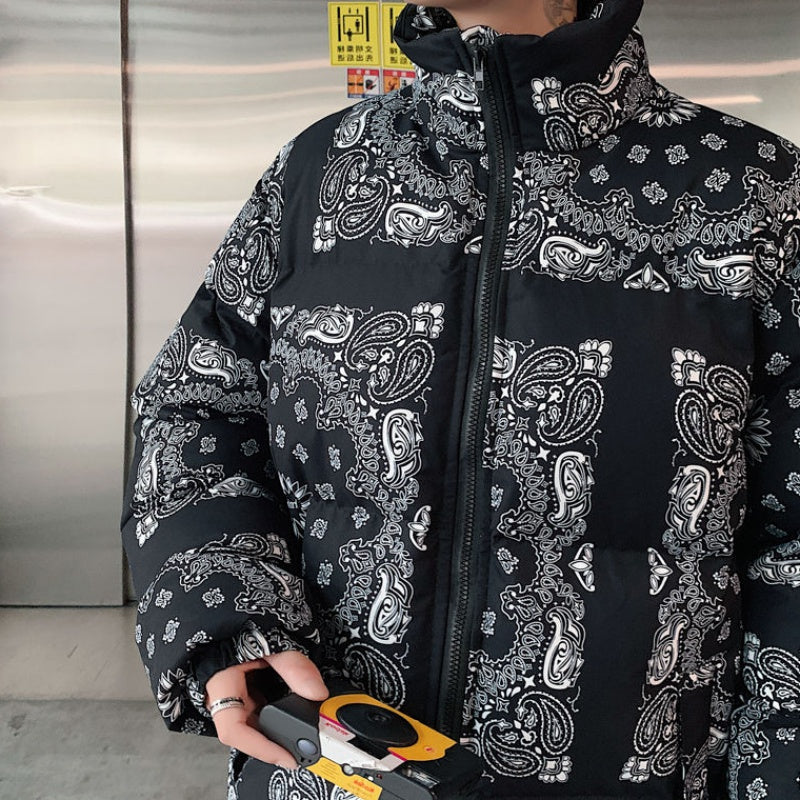 Cashew Flower Cotton-padded jacket Men And Women Winter Thickening Short Bread Cotton-padded Jacket Loose Large Size Flower Cotton-padded Jacket