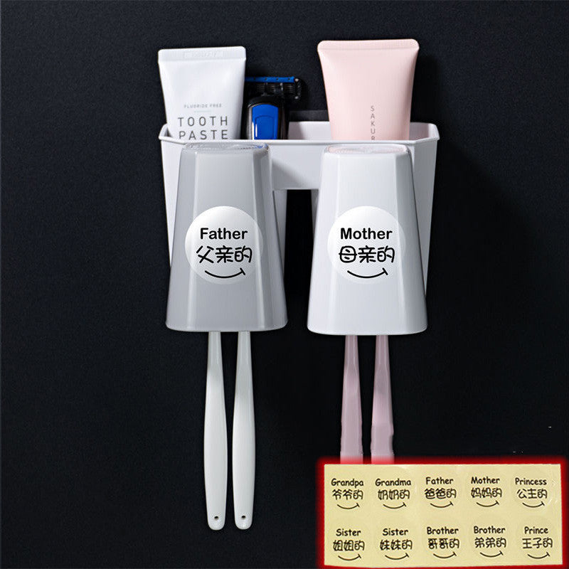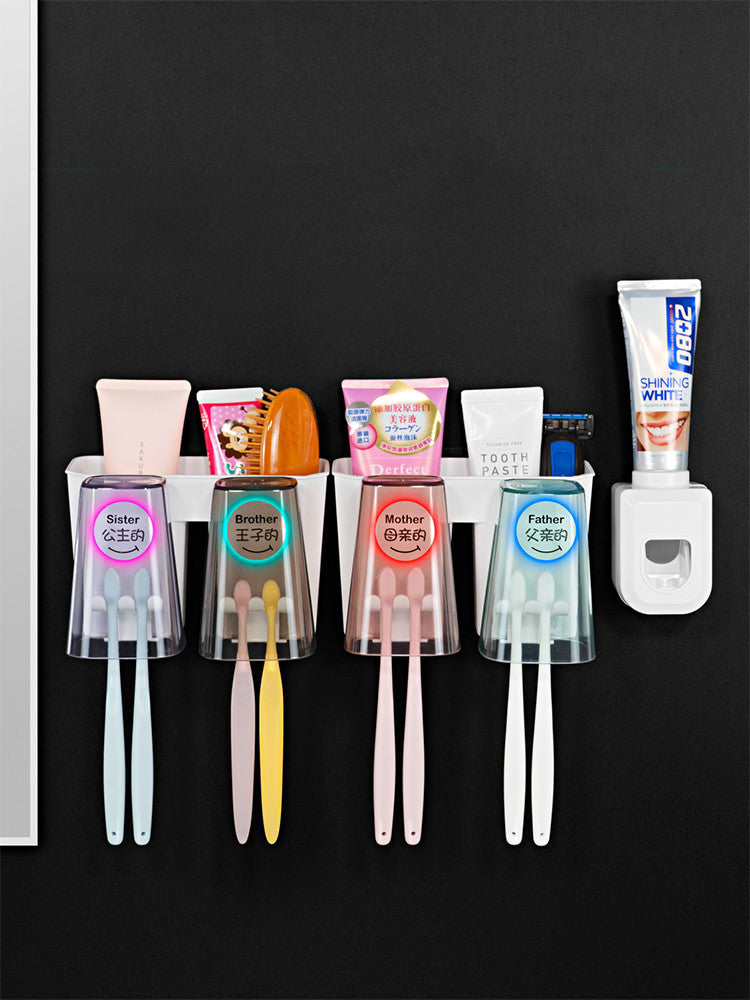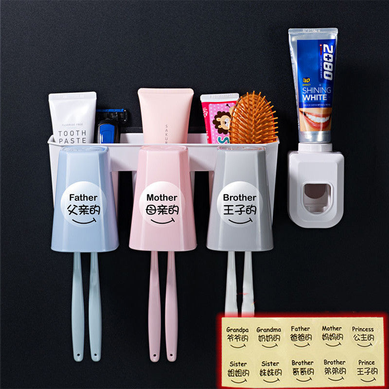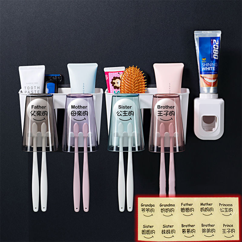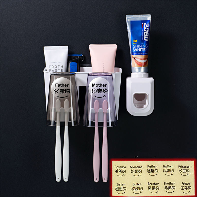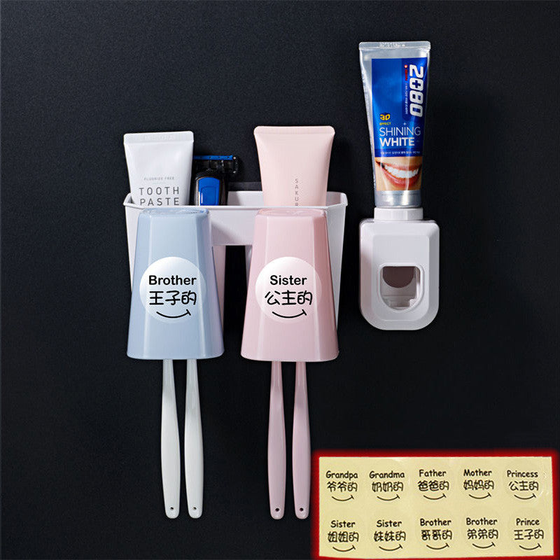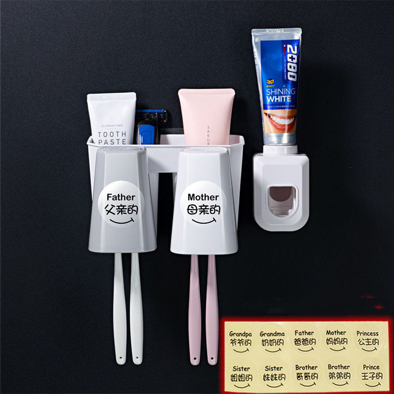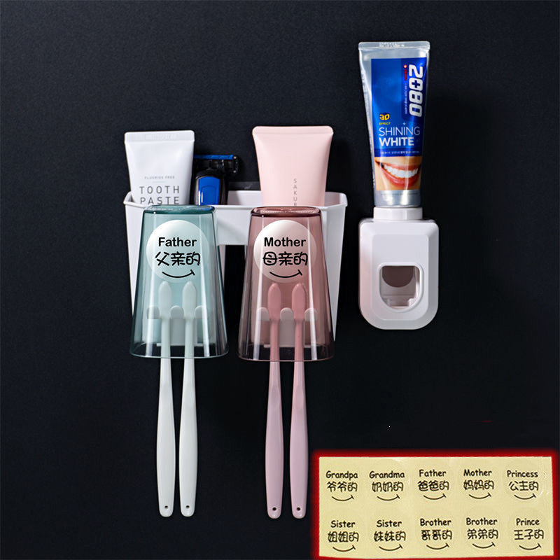 Punch Free Adsorption Toothbrush Holder Automatic Toothpaste Dispenser with Cups