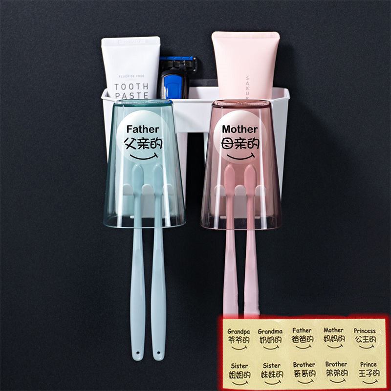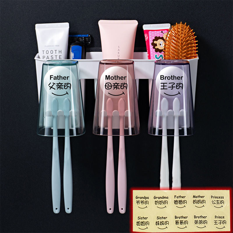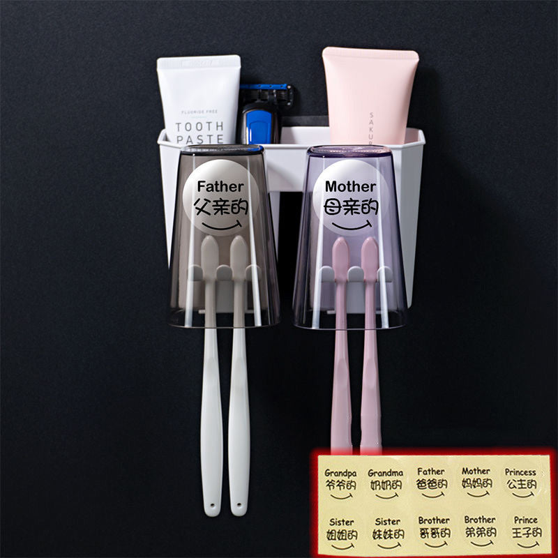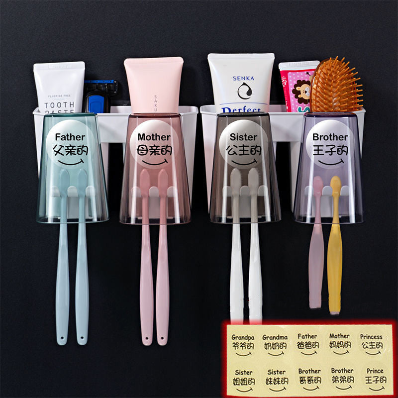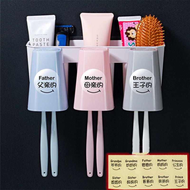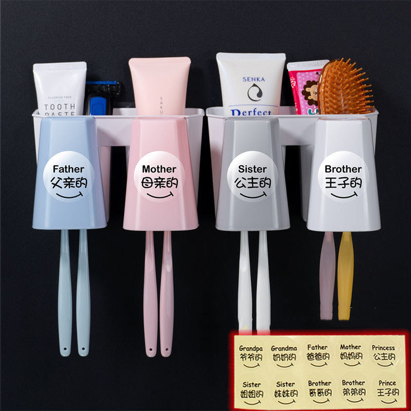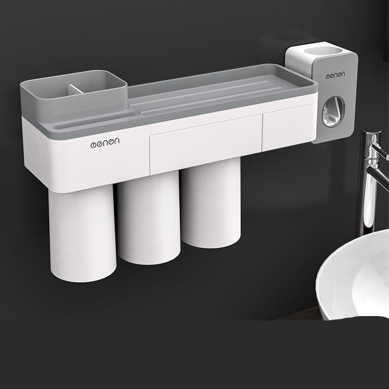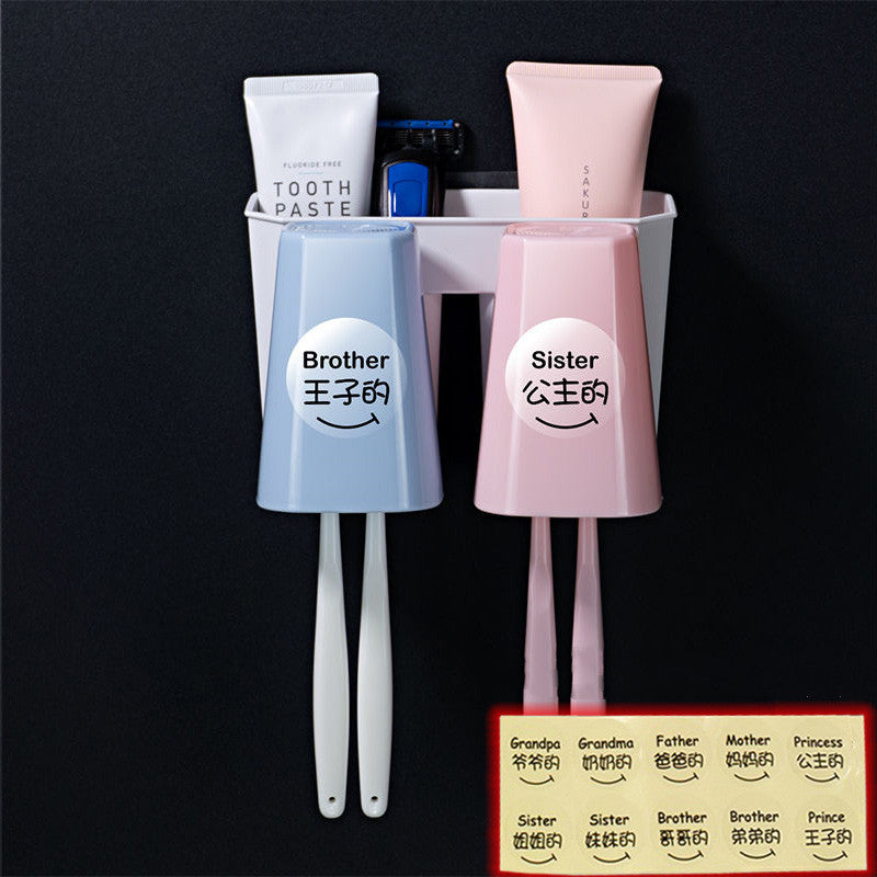 Punch Free Adsorption Toothbrush Holder Automatic Toothpaste Dispenser with Cups