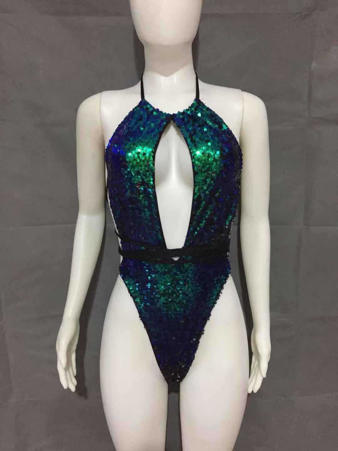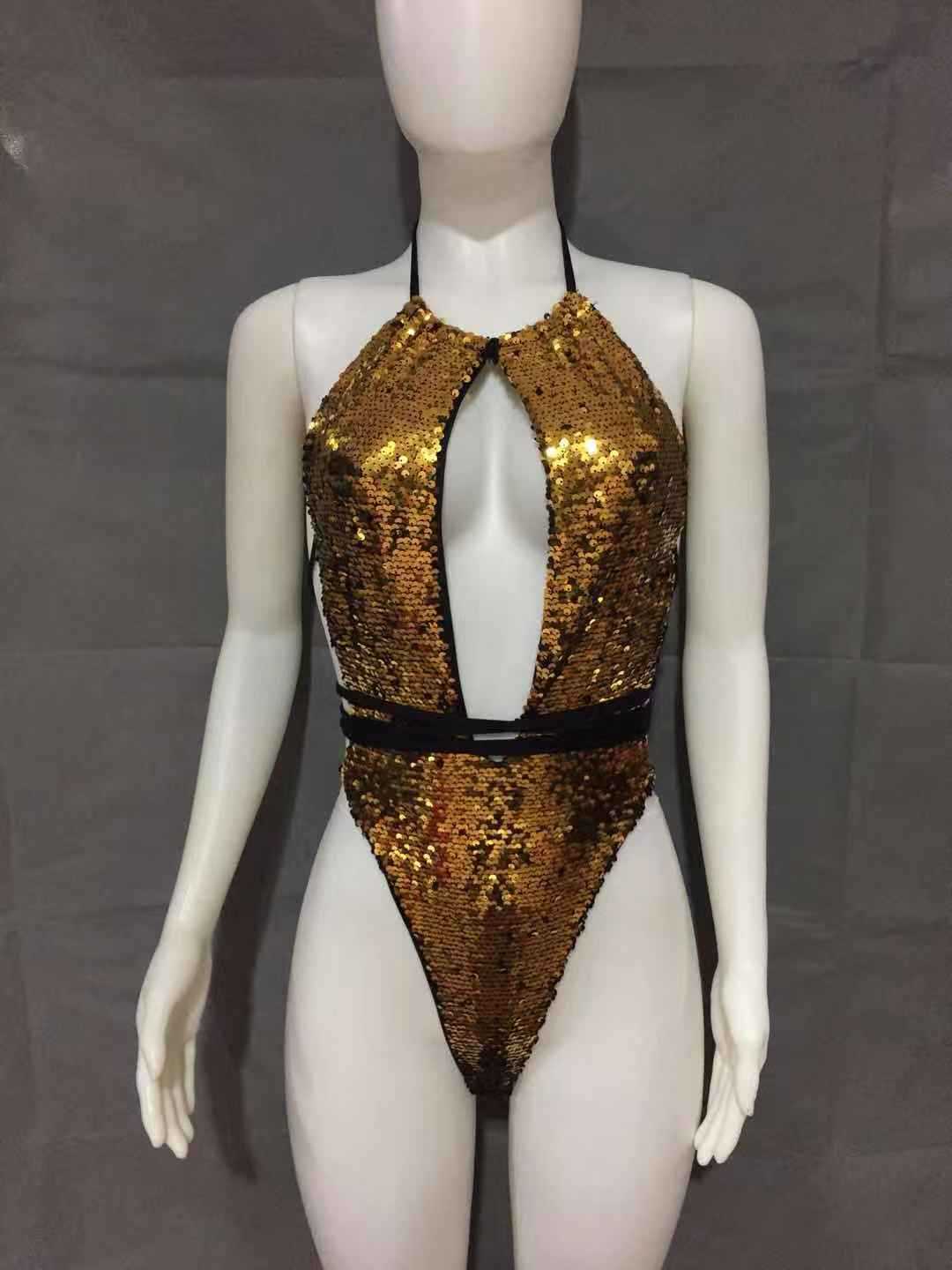 Sexy Strappy One-piece Swimsuit Halterneck Sequin Bikini
