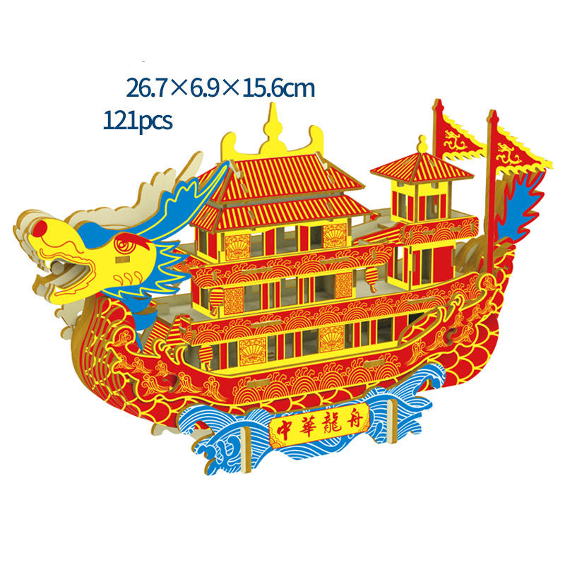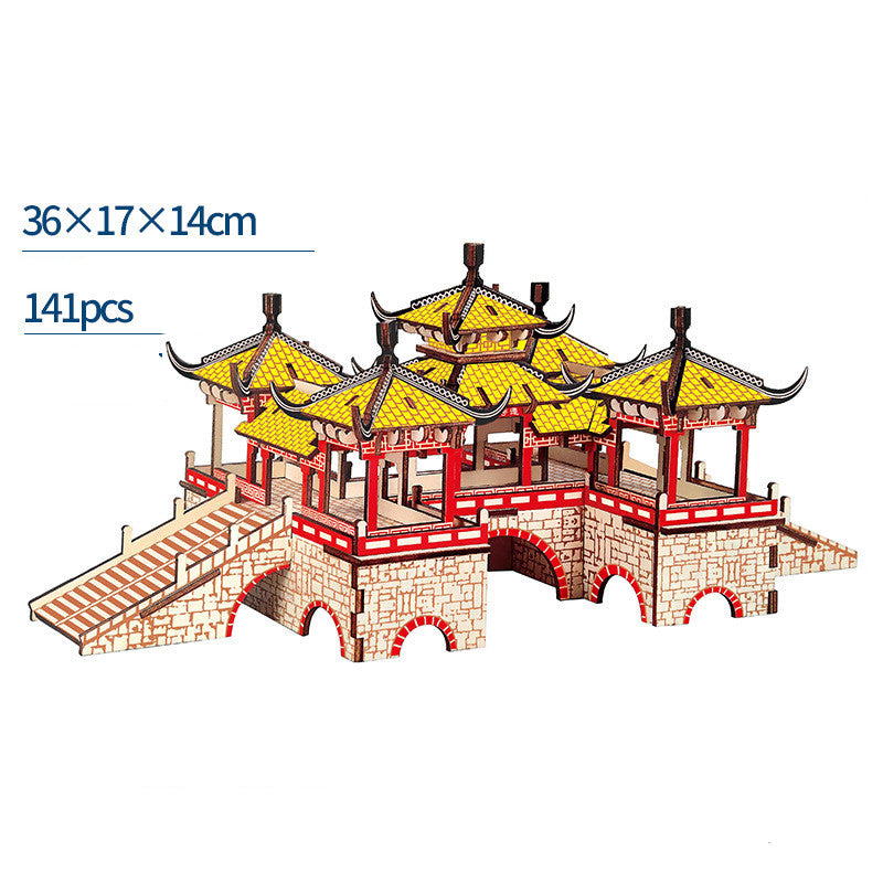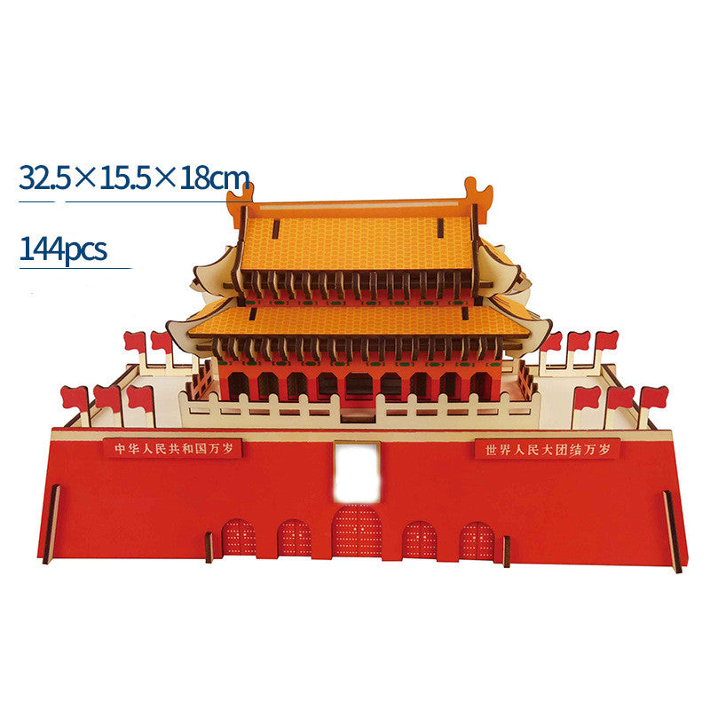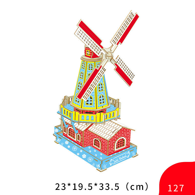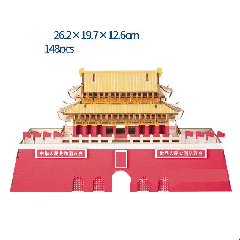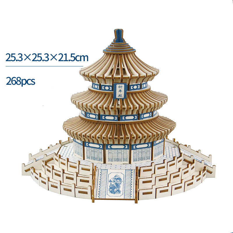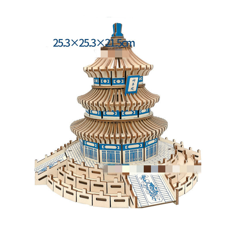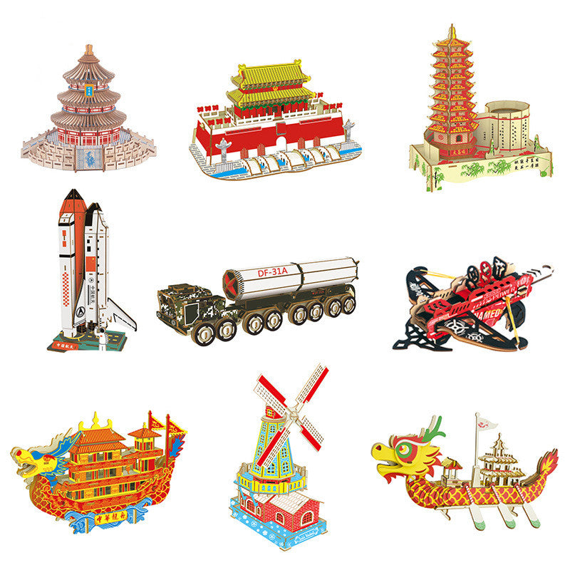 Wood Building Model Puzzles Toy 3d Three-dimensional Puzzle Board