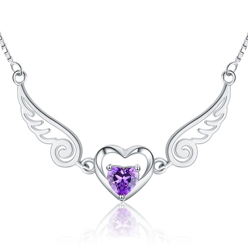 Angel Wings Necklace Pure Silver 925 Jewelry Romantic Purple Crystal Heart Necklaces For Women Sterling-Silver-Jewelry Necklace