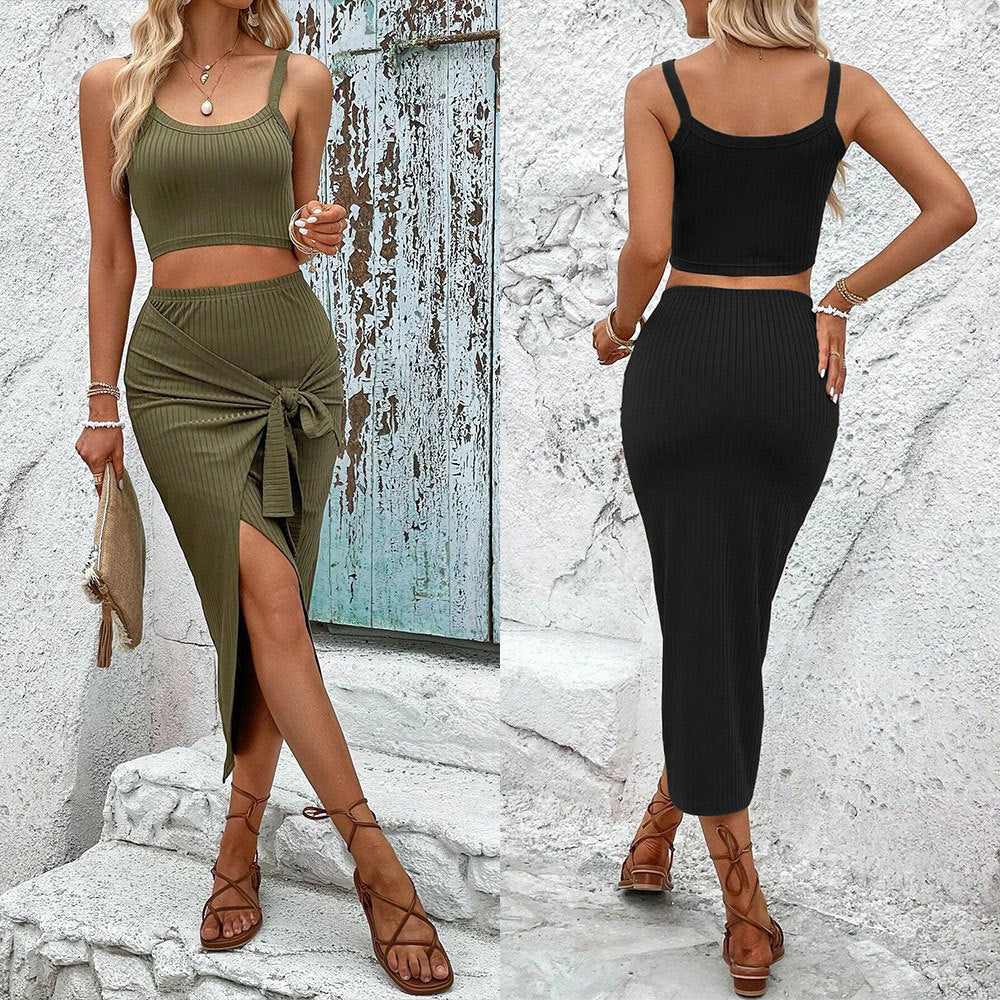 Women's All-match Commute Fashion Suit Camisole Slit Skirt Two-piece Set