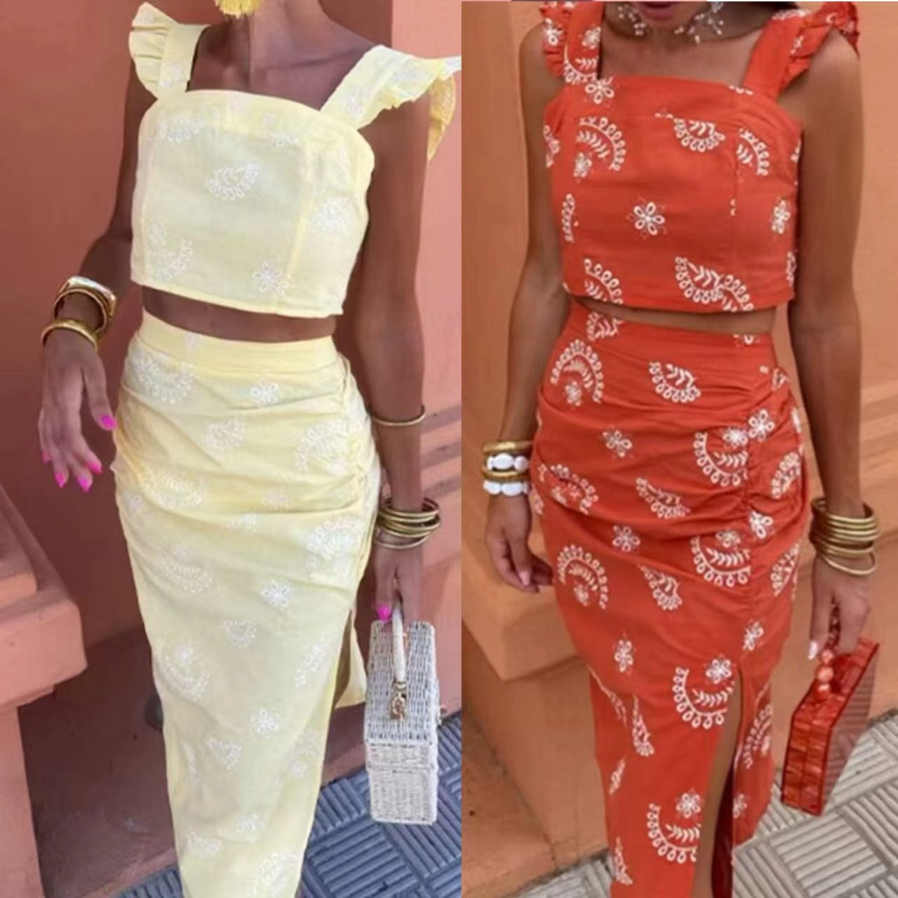 Professional Gradient Printing Sleeveless Bandeau Hip Skirt Suit - Milk Silk (Orange, S-L, Street Hipster)