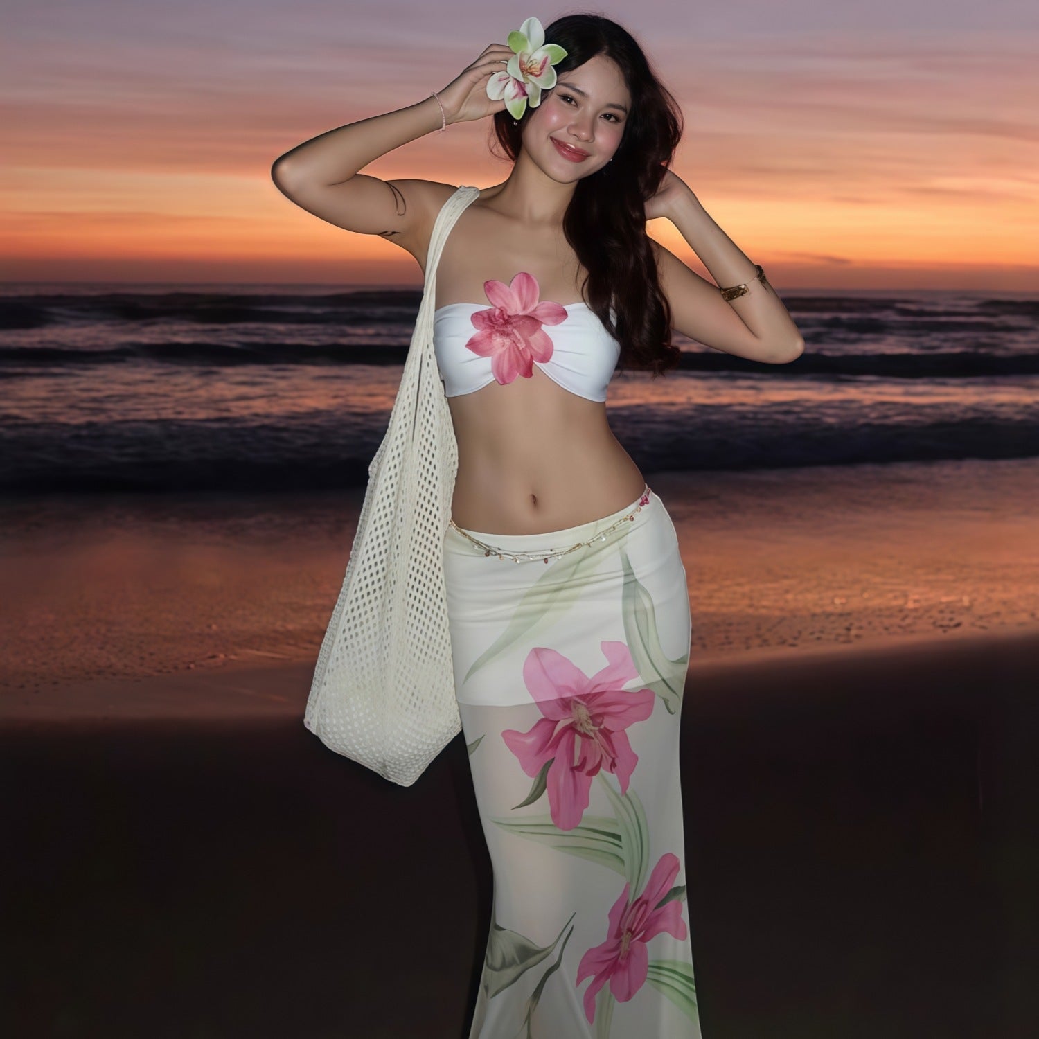 Women's High-Waist Printed Sarong Skirt - Lace-up Bow Design