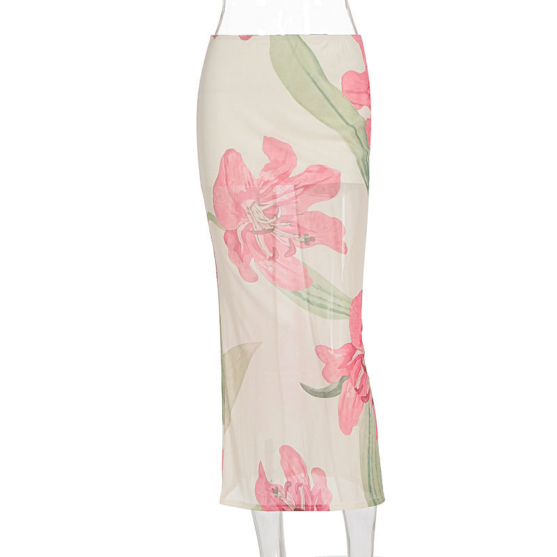 Gentle High Waist Slit Floral Skirt For Women - Feminine Softness