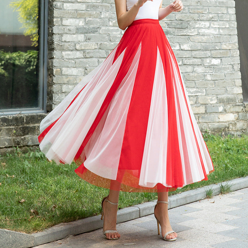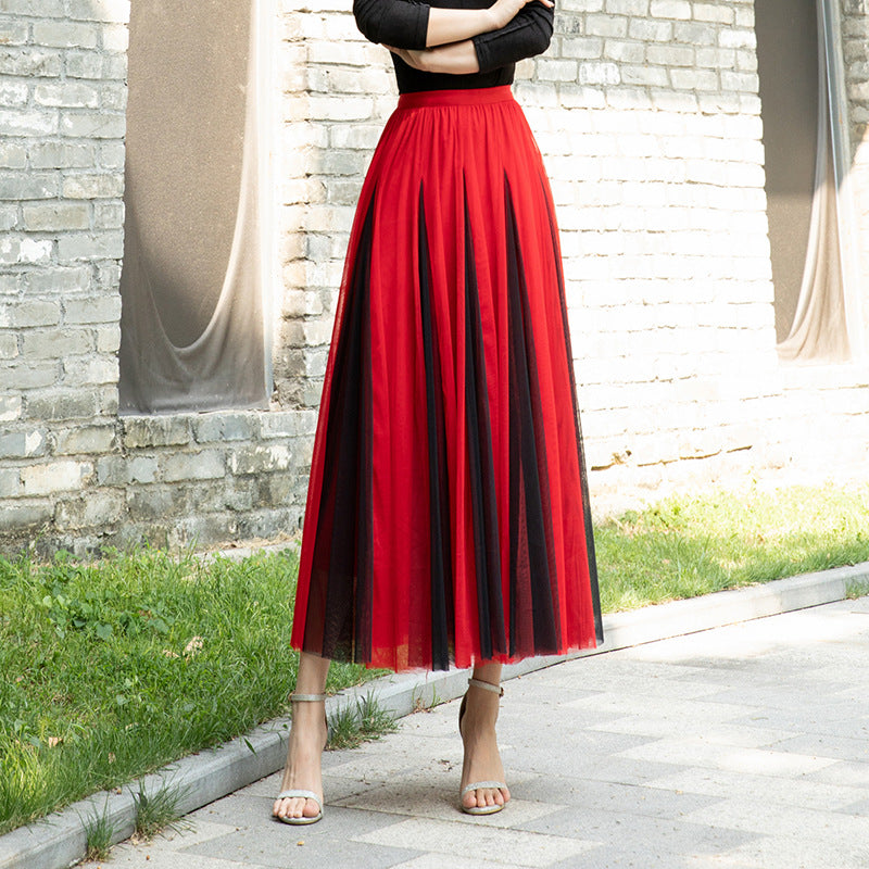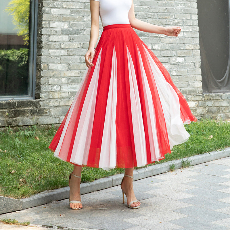 Summer European And American Style Laminated Decoration Midi Skirt Skirt