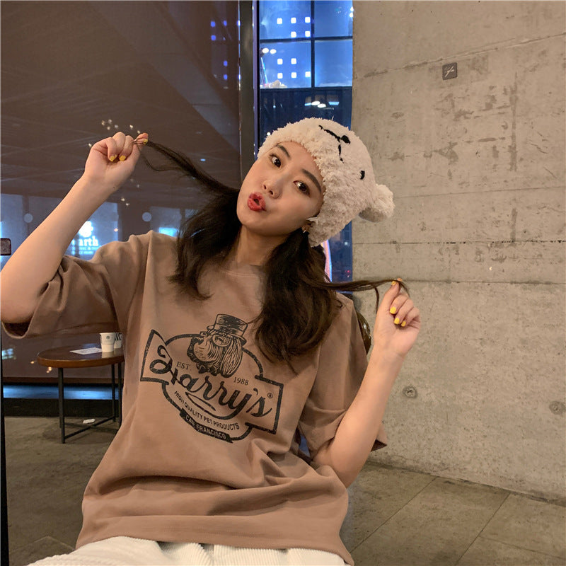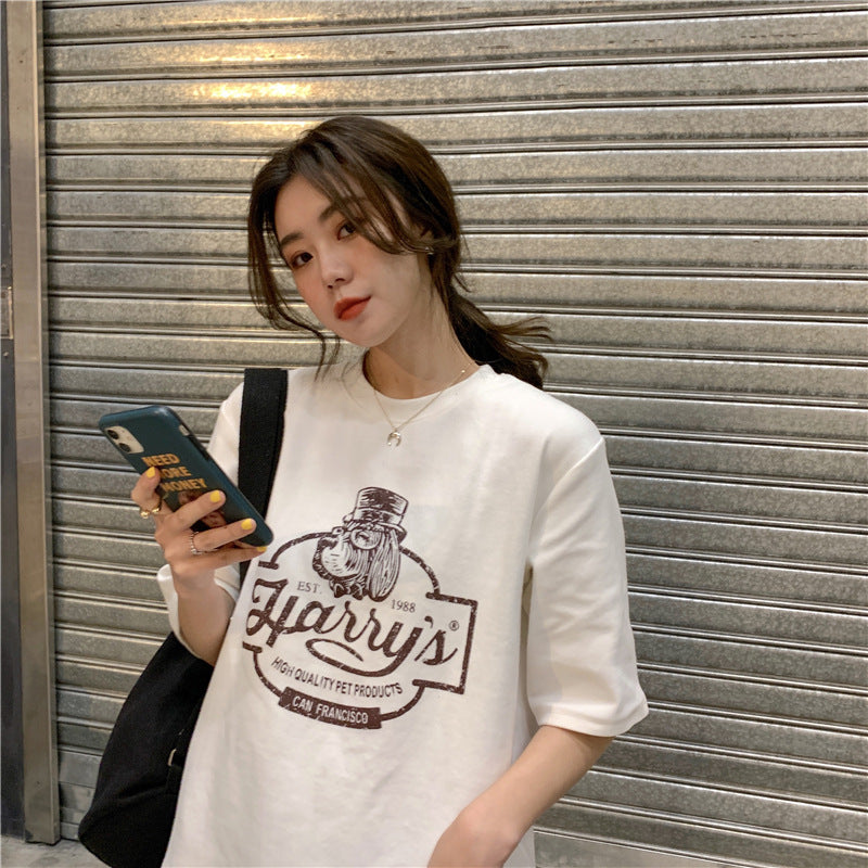 summer new Korean loose thin versatile letter printed student short sleeve T-shirt women"s Hong Kong style top fashion