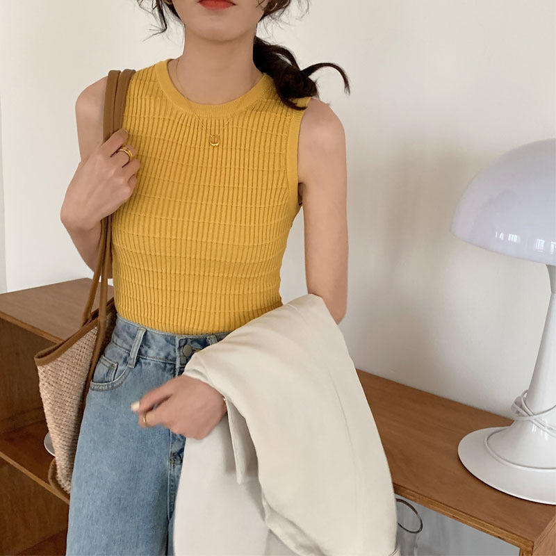 Fashion Tops Summer Hollow Out Sleeveless Top Cropped Knitted Tank Women Clothes