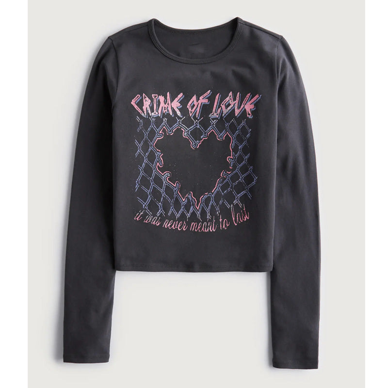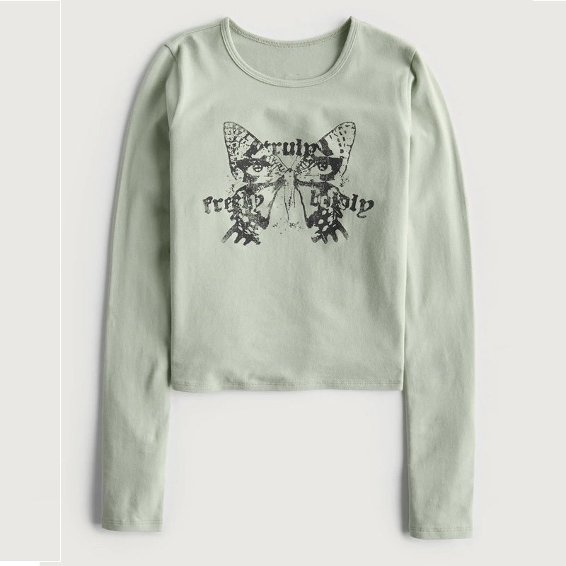 Vintage Printed Pea Green Bottom Long-sleeved T-shirt For Women