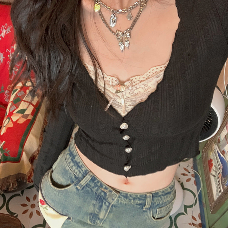 New Hollow Heart Beaded Knitted Bottom Shirt For Women