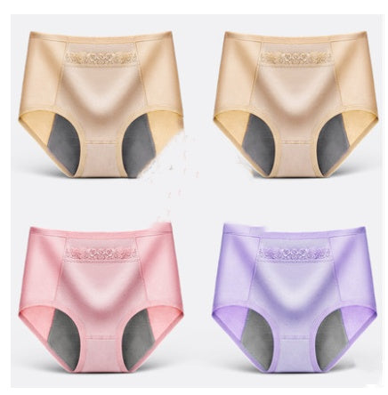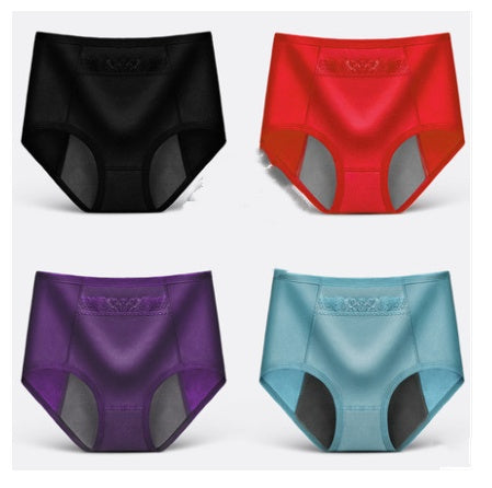 4 Physiological Underwear Women''s Waist Cotton Aunt Menstrual Period Leak-proof Girl Warm Breathable Triangle Health Pants