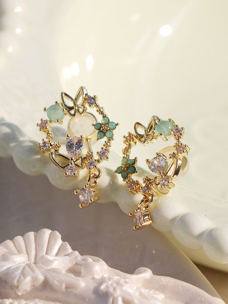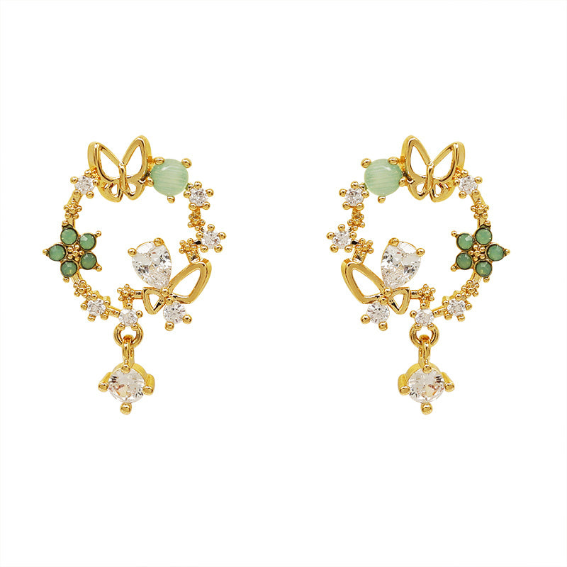 Explosion Style Tassel C-shaped Copper Zircon Ear Bone Clip 4 Pcs Butterfly