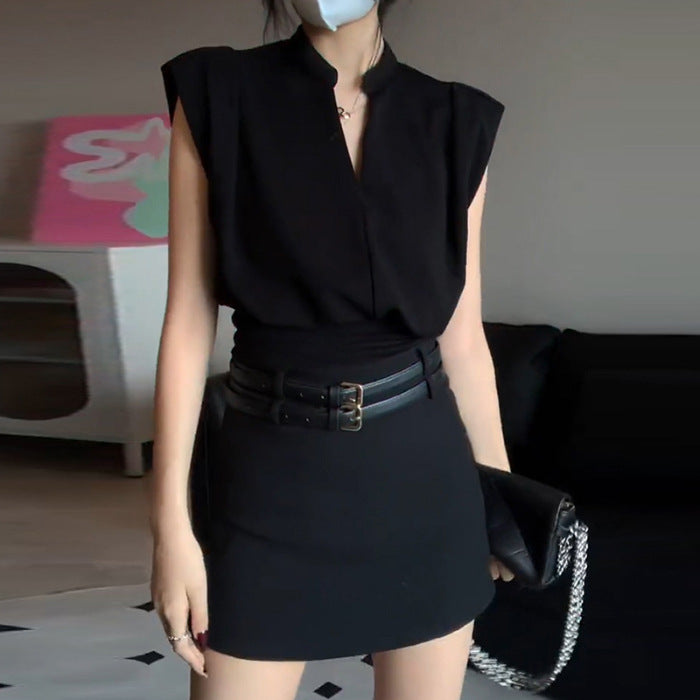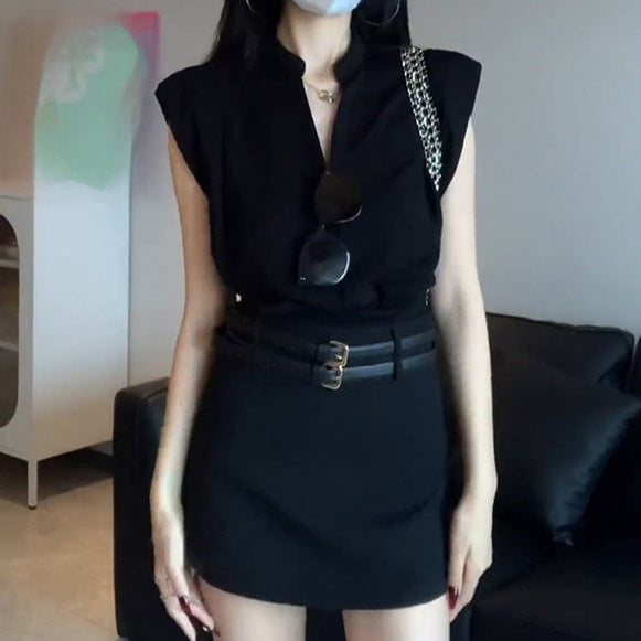 Goddess Temperament Sleeveless V-neck Shirt Skirt Two-piece Suit