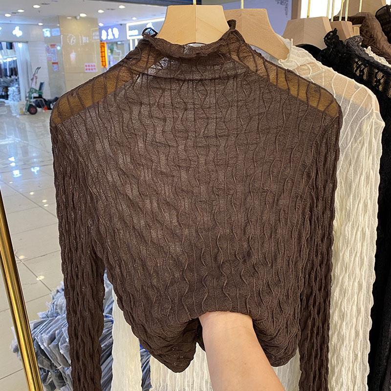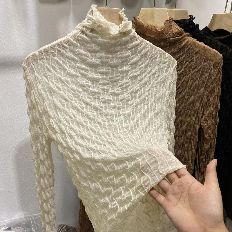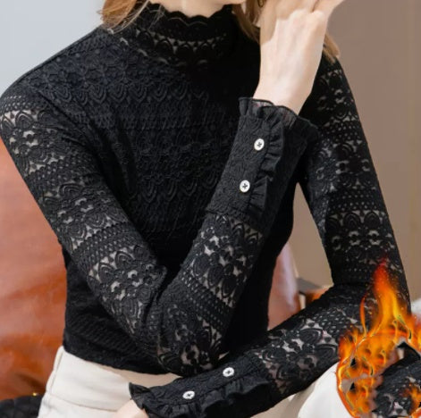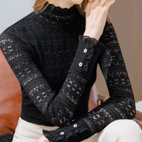 Chemisier en dentelle à col mi-haut pour femmes en automne et en hiver