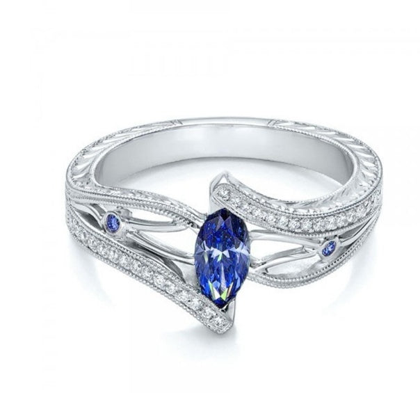 Bague de fiançailles topaze aigue-marine de luxe européenne et américaine
