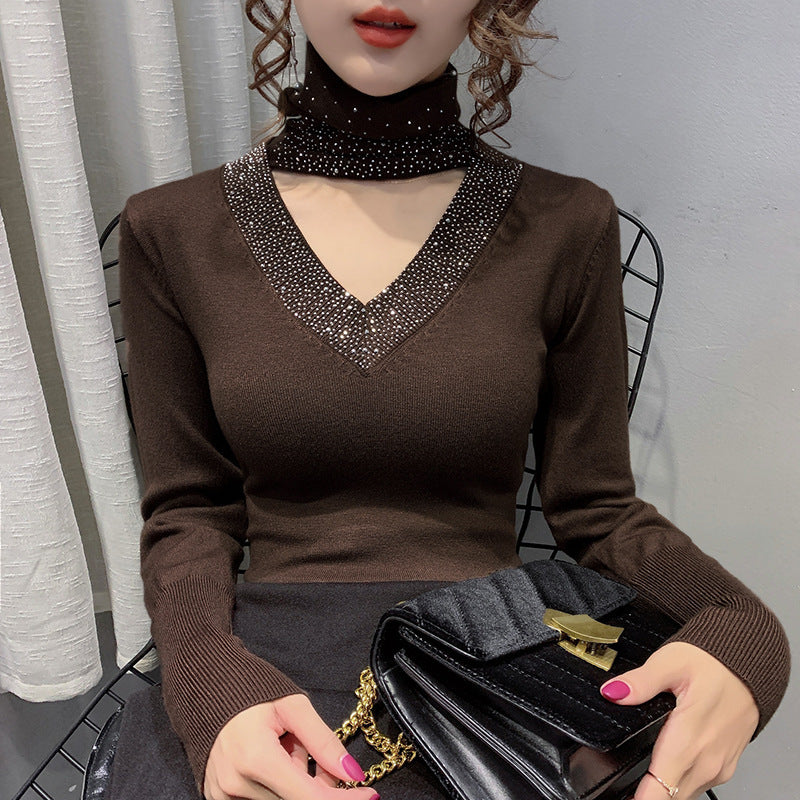 Bas de pull slim à col en V en forage chaud