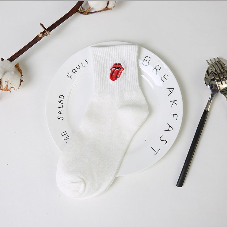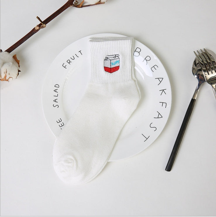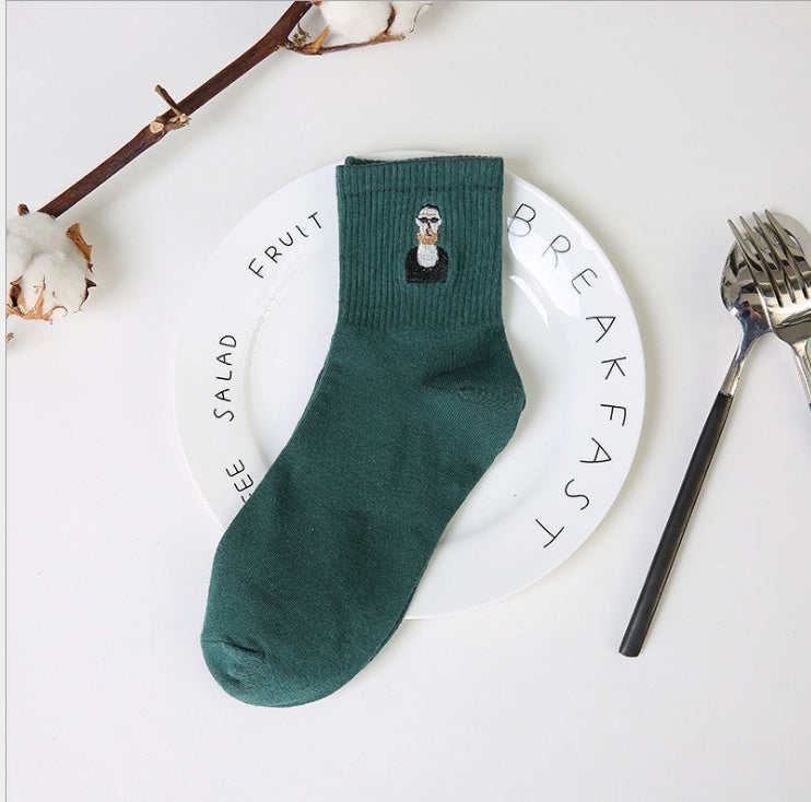 Chaussettes brodées de dessin animé Harajuku japonais et coréen, chaussettes de Couple créatives pour hommes et femmes, chaussettes en coton