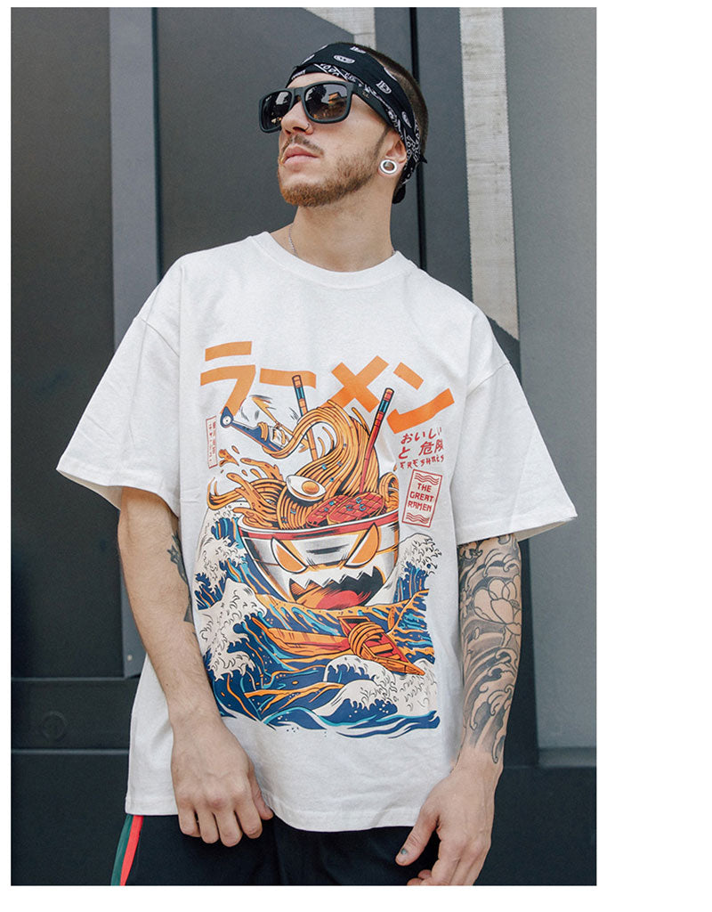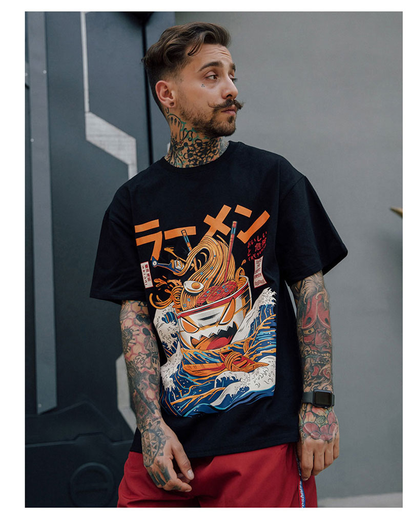 T-shirt à manches courtes pour hommes, ample, Style japonais rétro Harajuku, manches tombantes, épaules tombantes
