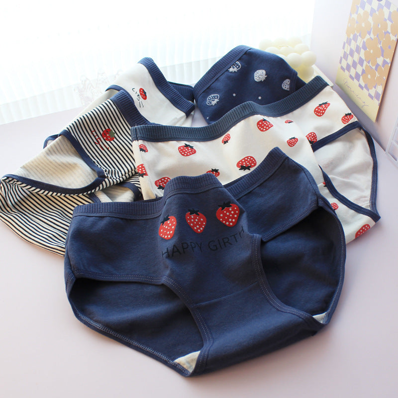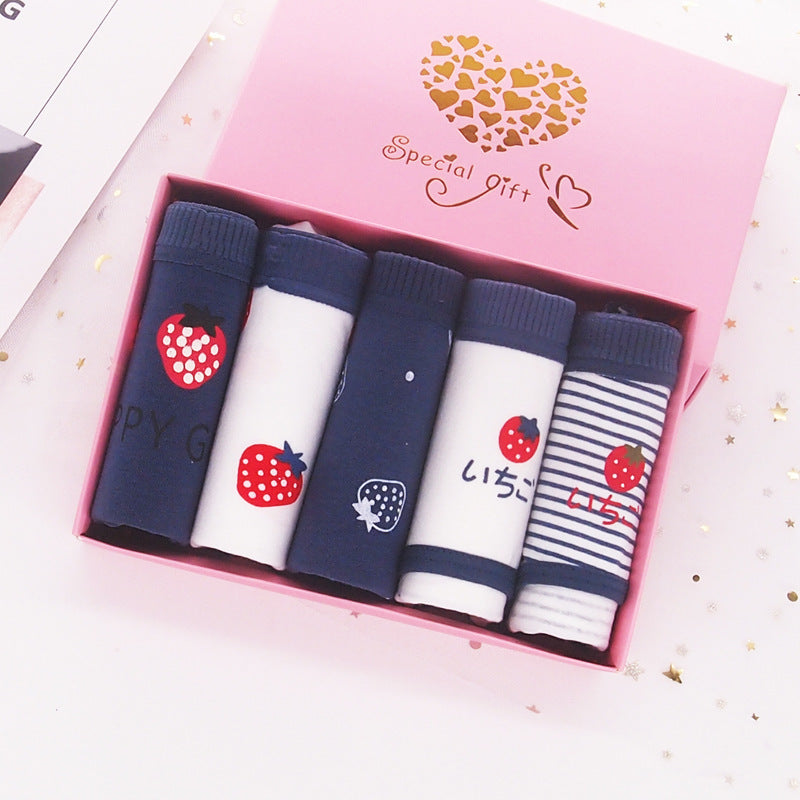 Japanese Style Purplish Blue Strawberry Underwear 5 Pack Women