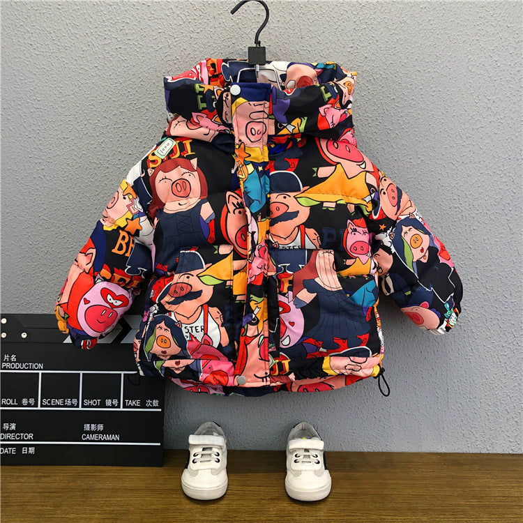 Les enfants moyens et petits portent des vestes d’hiver rembourrées double face