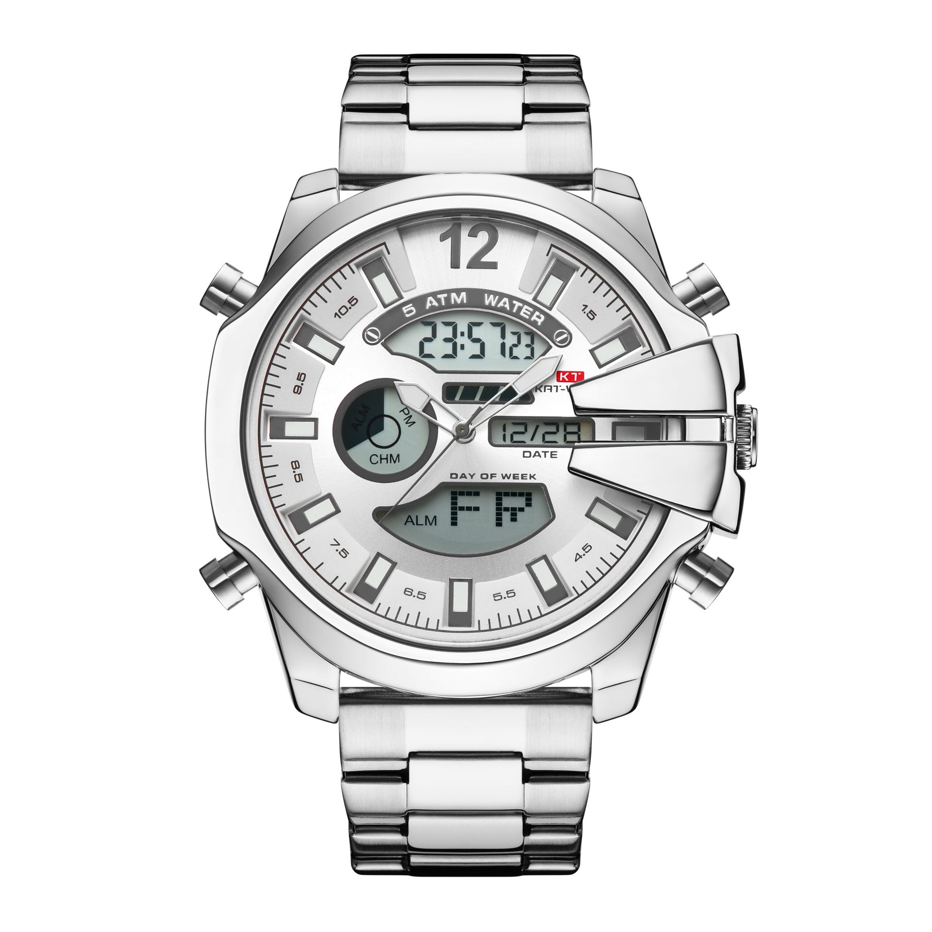 New Men's Double Display Alarm Clock Led Sports Steel Watch Waterproof